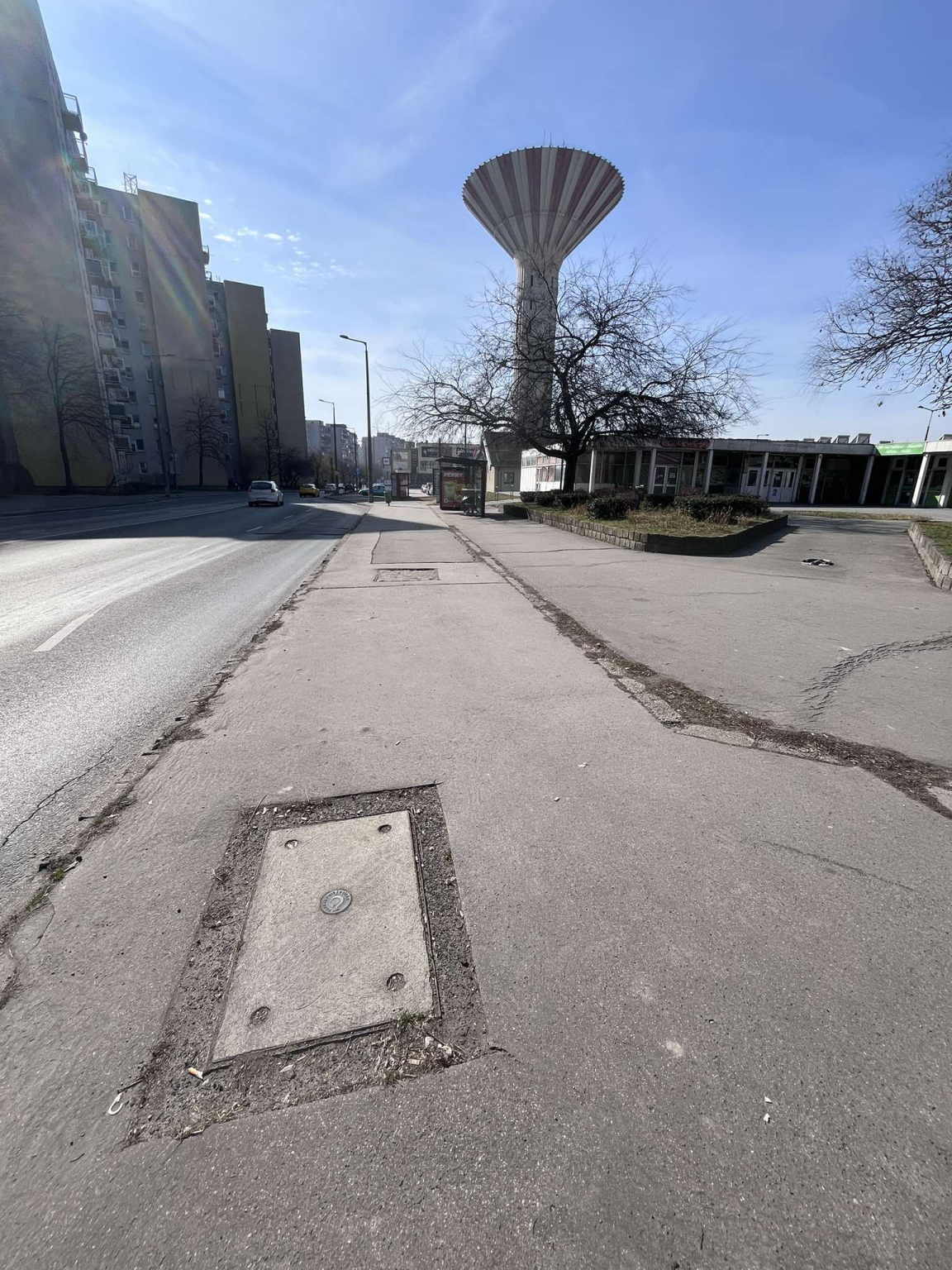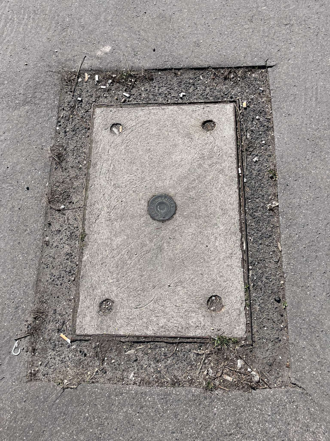 Rosszul helyreállított , billegő közutas fedlap nem messze az idősek otthonától.