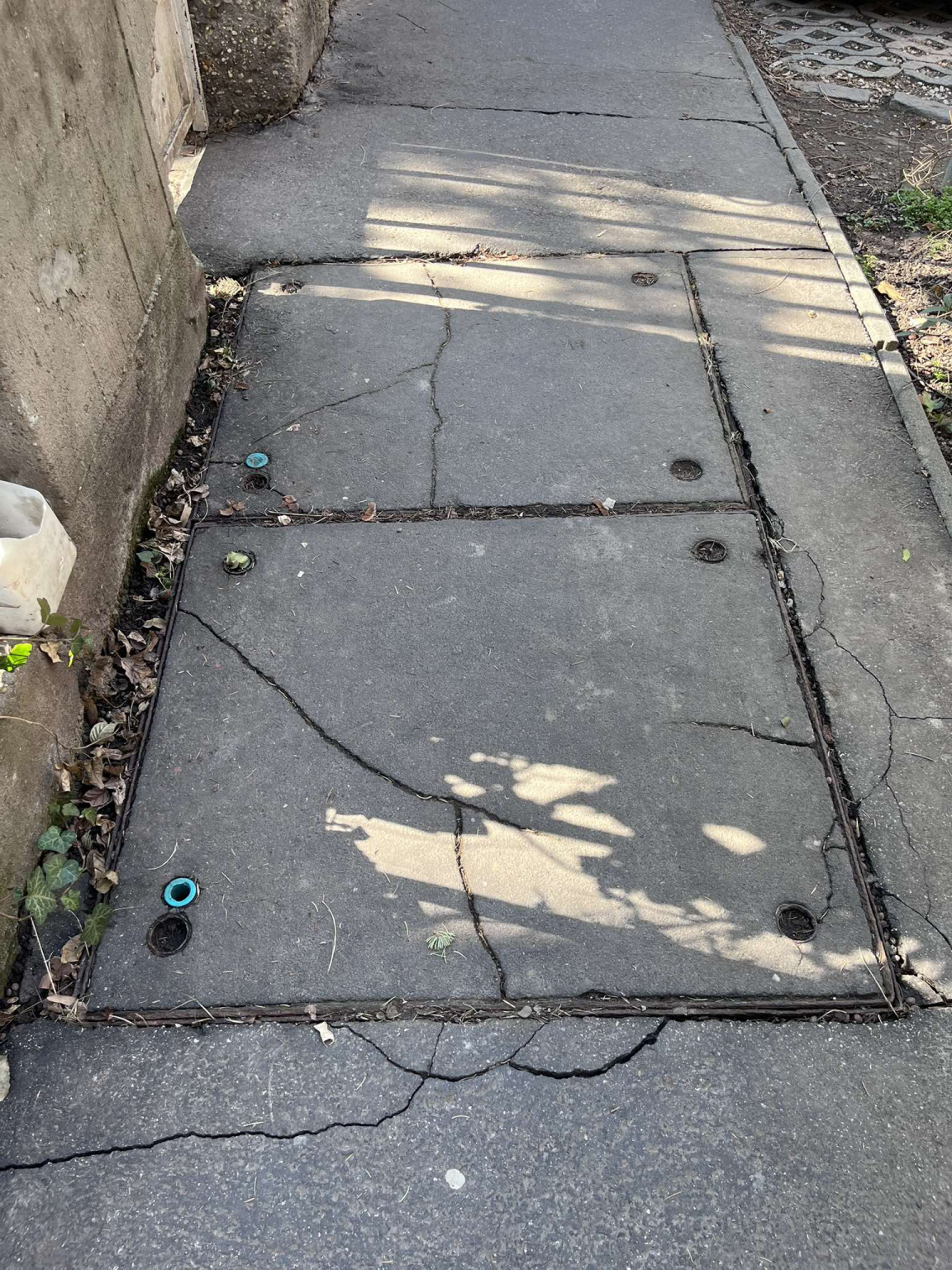 Ménesi út 32 előtt "Postás" fedlapok megdőltek a kerítés felé. Kérjük igazításukat. Köszönjük.