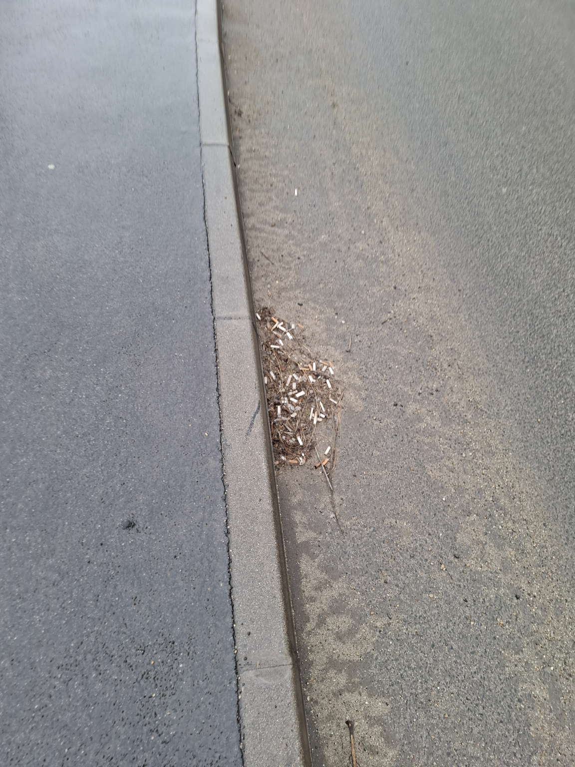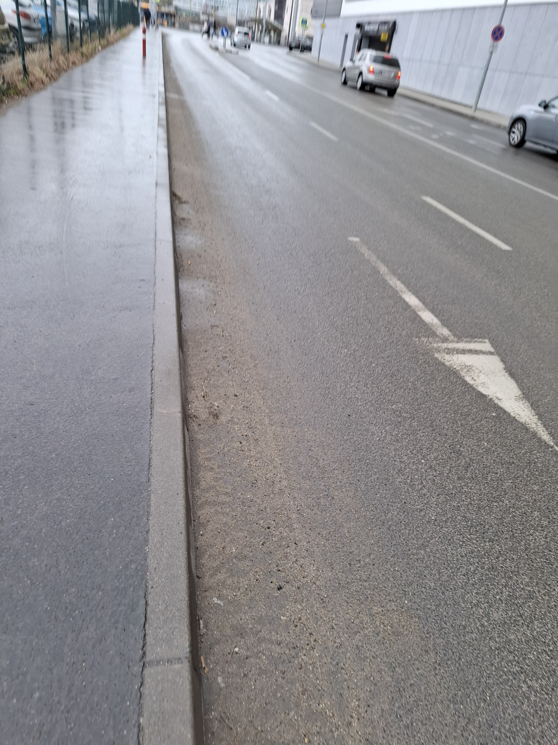 A Gyergyótölgyes utcán sok homok, csikk van a padka mentén.