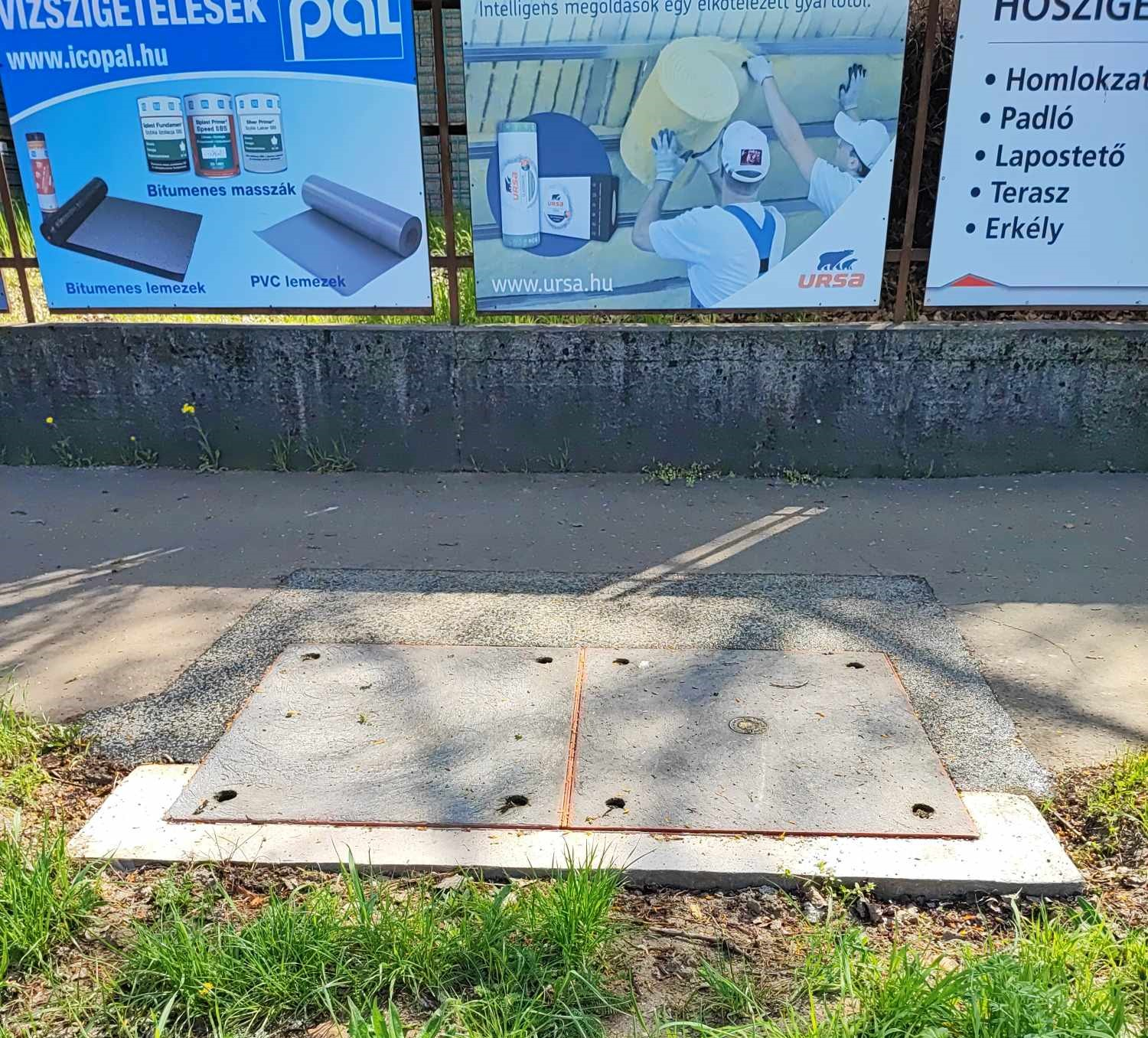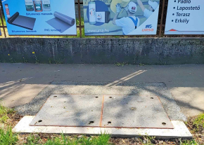Süllyedő közműszekrény , húzza magával a járdát is.