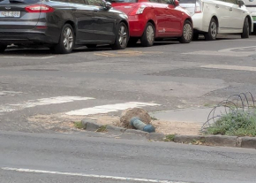 Az őszi felújítás óta hiányoznak a parkolást segítő útburkolati jelek az utcában. (Zárójelben, ezeket pár héttel az úttest teljes felbontása előtt festették fel!)