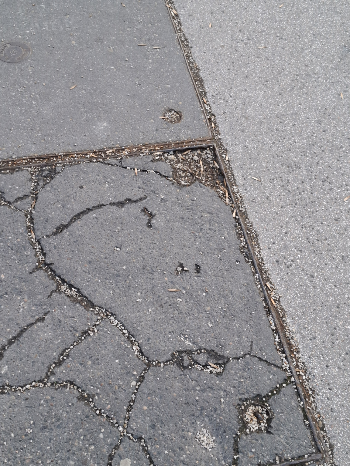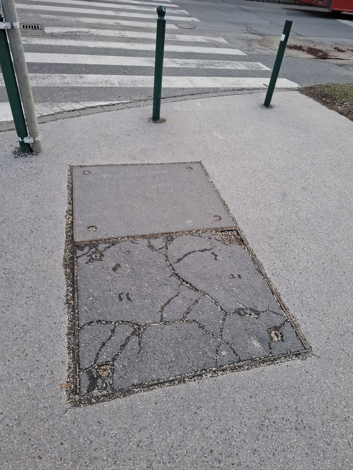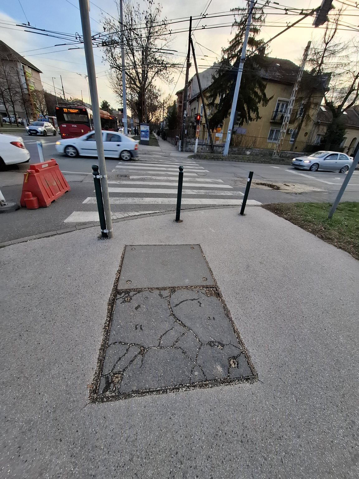 Az Egressy út - Vezér utca kereszteződésében az egyik fedlap rossz állapotú.
