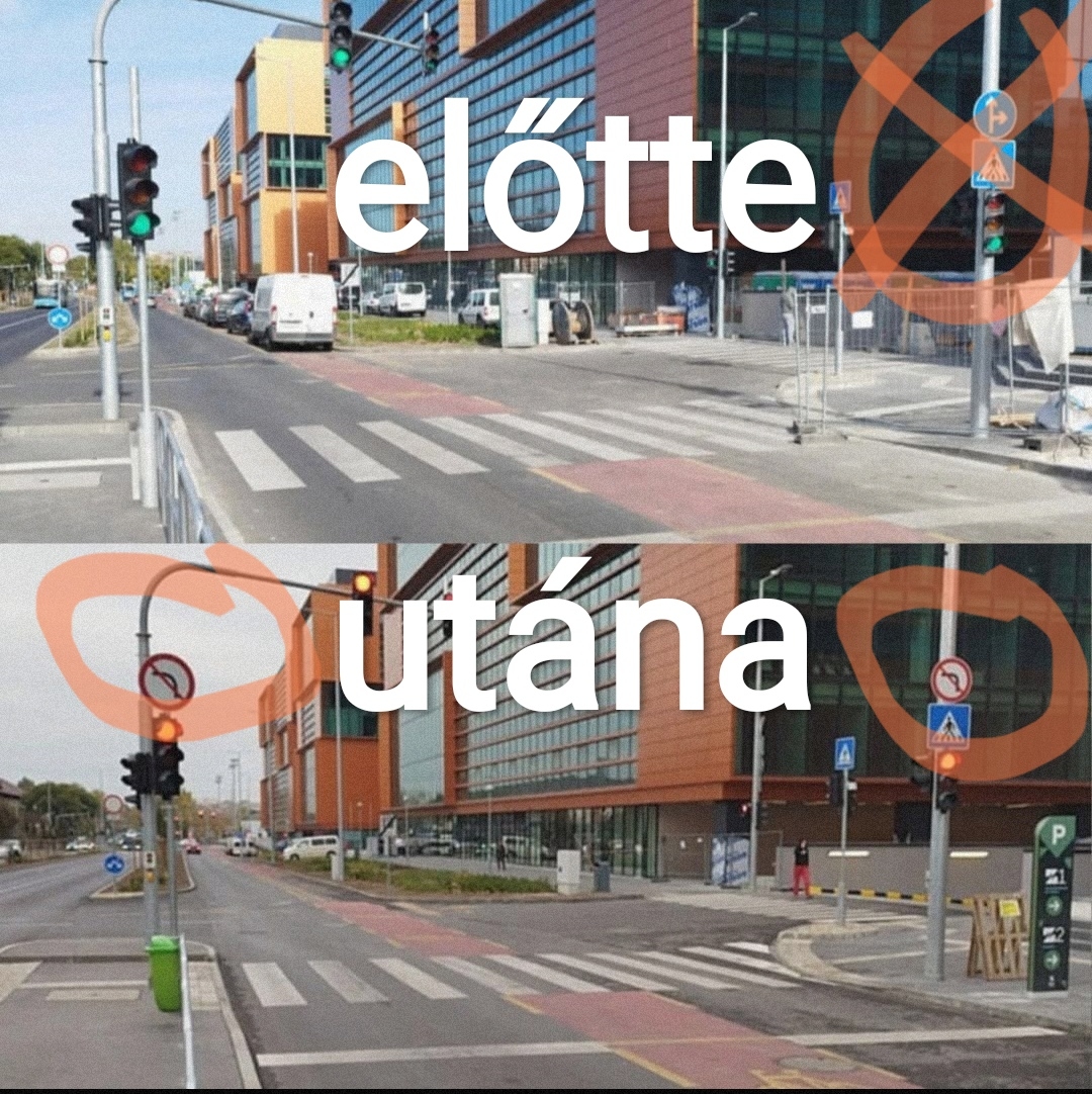 „Köszönjük szépen a Budapest Közút által tervezett burkolati jelek elhelyezését. Reméljük hamarosan megvalósul! Kérjük a kötelező haladási irányt jelző kék tábla helyett, balra kanyarodást TILTÓ tábla kihelyezését is, ahogy az az előtte majd utána lévő kereszteződésben is, és a Csömöri úti minta kereszteződésben is látható a korábbi képen. Egy tiltó tábla, feltűnőbb, és talán erősebb hatású, mint a kék hátterű, noha ez esetben ugyanazt jelentik.