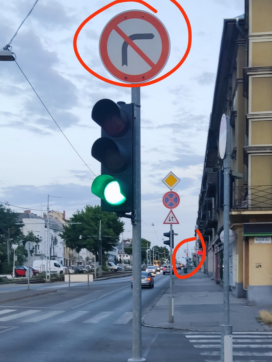 „Az úton 100 méterrel korábbi kereszteződésben egy jobbra kanyarodni tilos tábla jelzi az ottani tilalmat, és útburkolati jel is a kötelező haladási irányt. Hasonló megoldást kérünk ebben a balesetveszélyes kereszteződésben is!”