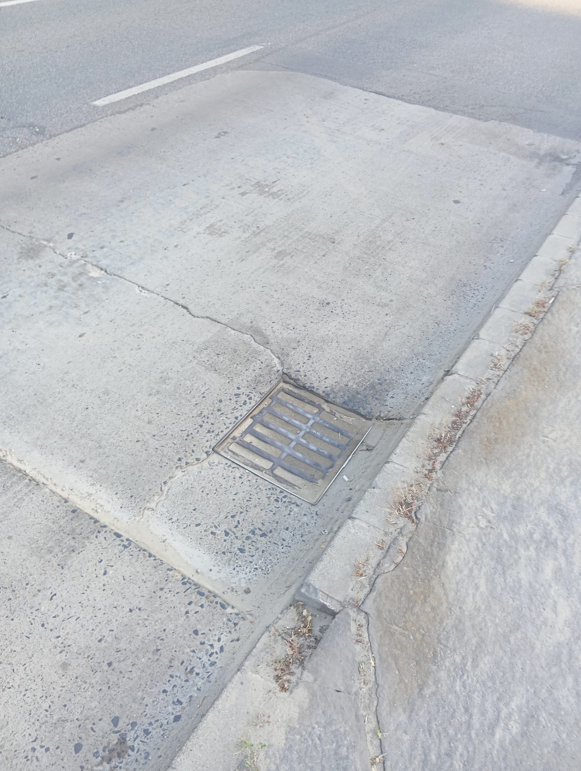 Kérem az illetékest, hogy a képen látható buszmegállóban a víznyelő körüli részt betonozzák újra!
