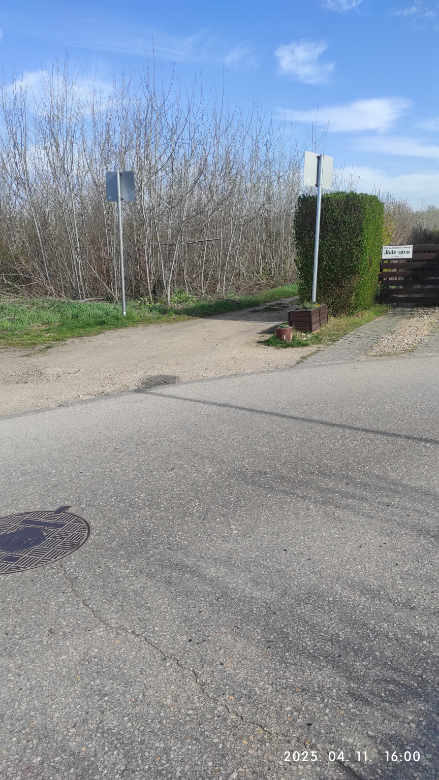 A frissen kihelyezett lakó-pihenő övezet táblák el lettek fordítva. (Az oszlopok is ferdék.)