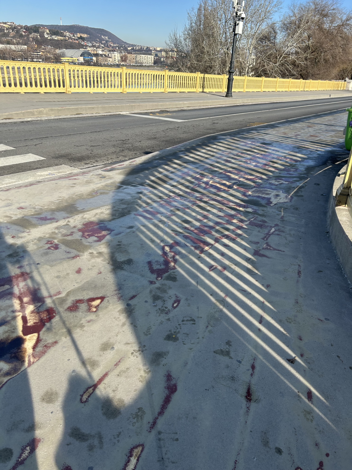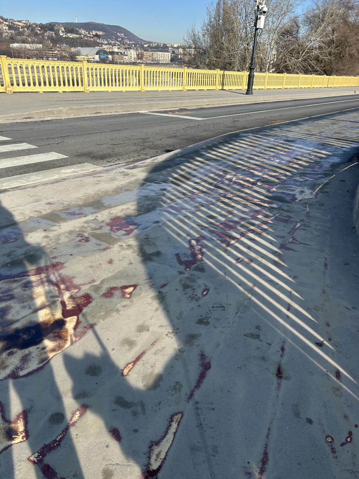 A Margit hídon, a sziget bejáratánál a vasszerkezetről több helyen lekopott a felszíni réteg, így nagyon veszélyes és csúszós lett - főleg esős időben