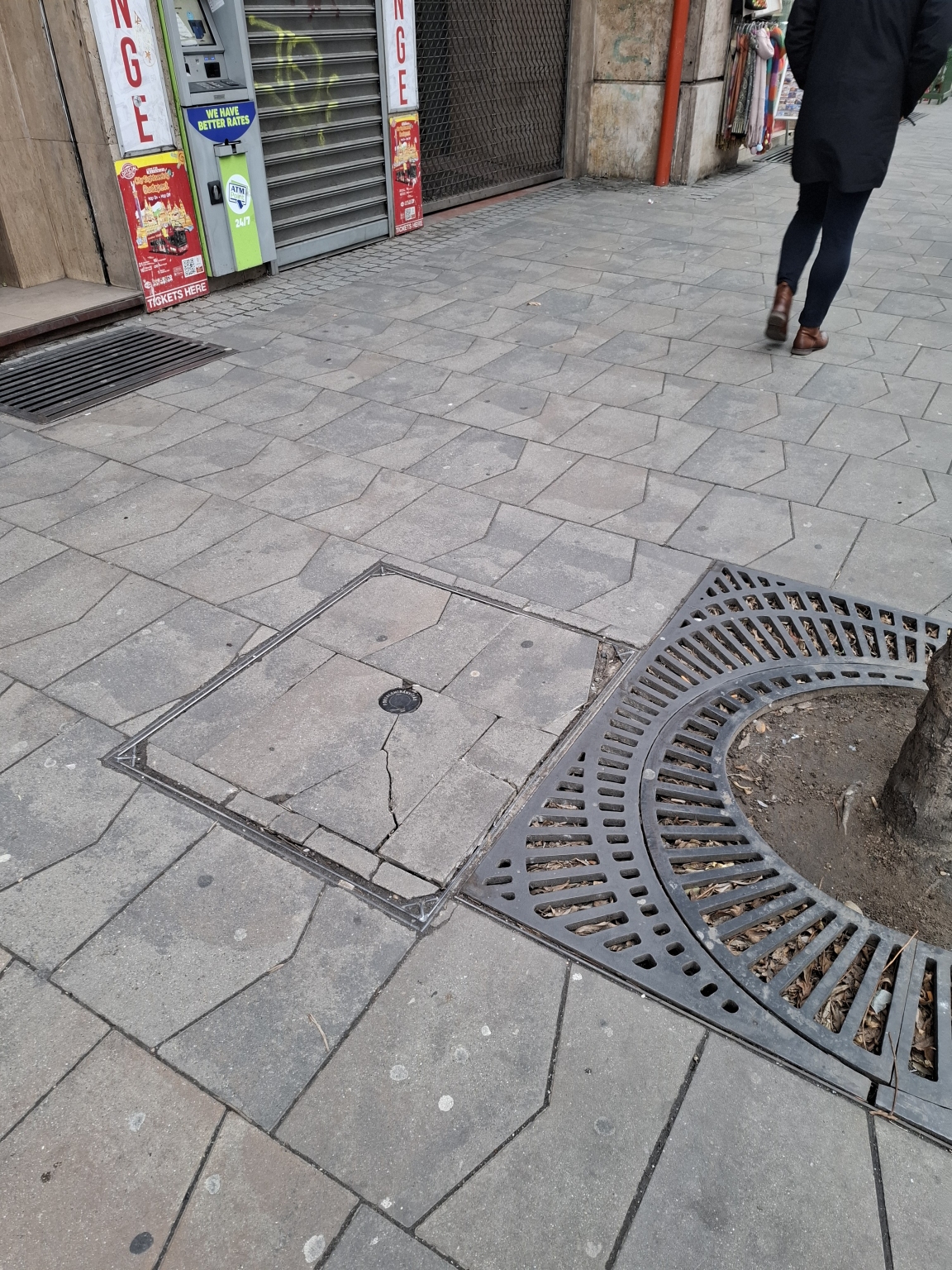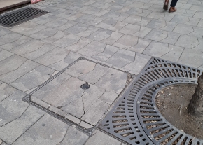 A kiskörúton a Telenor bolttól nem messze a zebrához közel van egy akna, aminek a fedele K kövekkel van burkolva. Sajnos a burkolat sérült, mozog, van olyan kő ami kiesett belőle.