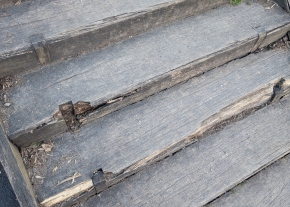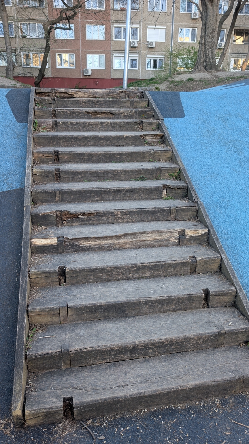 A Holdudvar park csúszdák melletti lépcső kezd szétkorhadni. Kérjük, vizsgálják meg, nem balesetveszélyes-e és indokolt esetben javítsák.