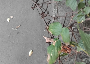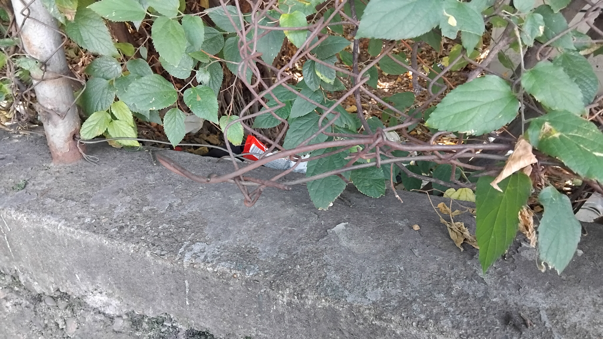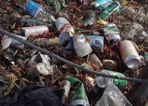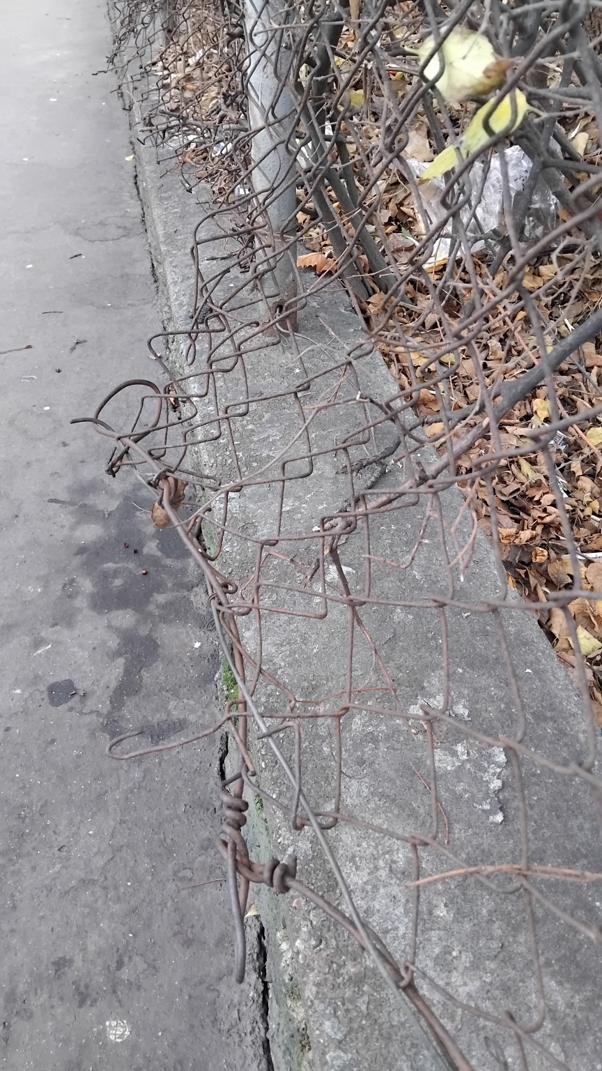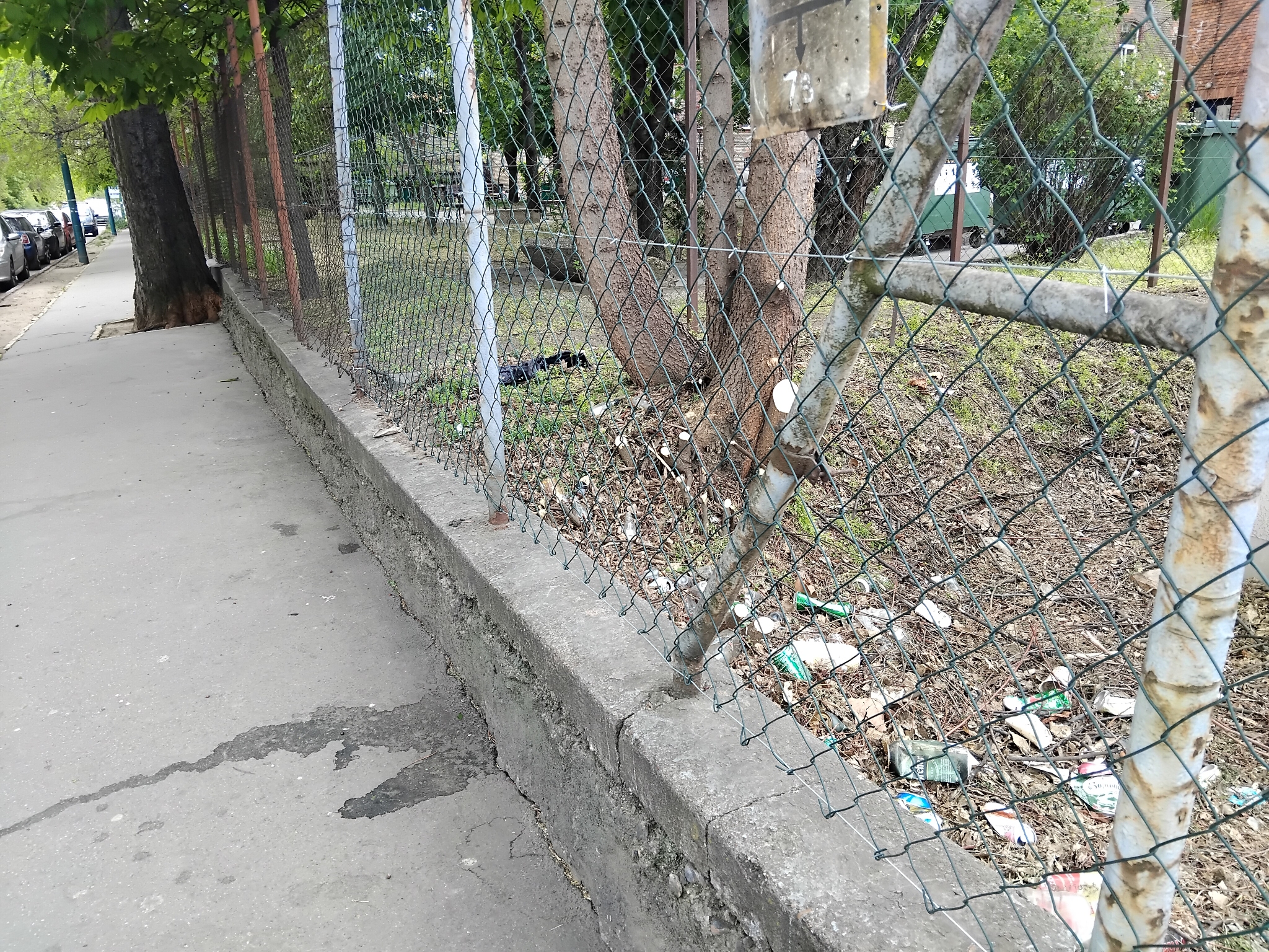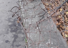 A kerítés kb. 50-60 éves, erősen rongált, és egyesek ide dobálják be a szemetüket, több hónapos aludobozokat látunk.