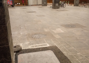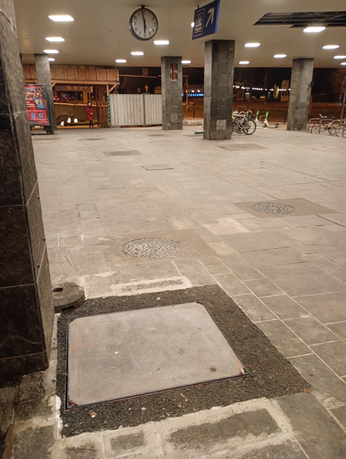 Hiányos aknafedél a gyros-os előtt - Déli pályaudvar