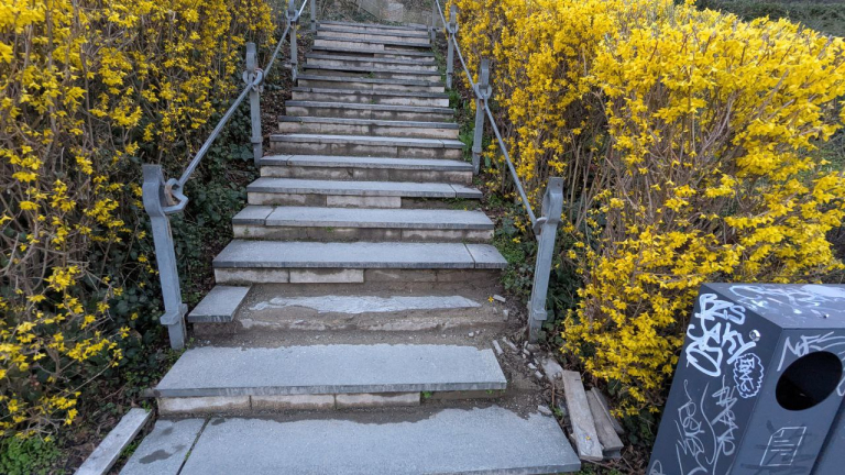 Törött lépcsőfokok. Kérem, javítsák meg. Köszönöm.