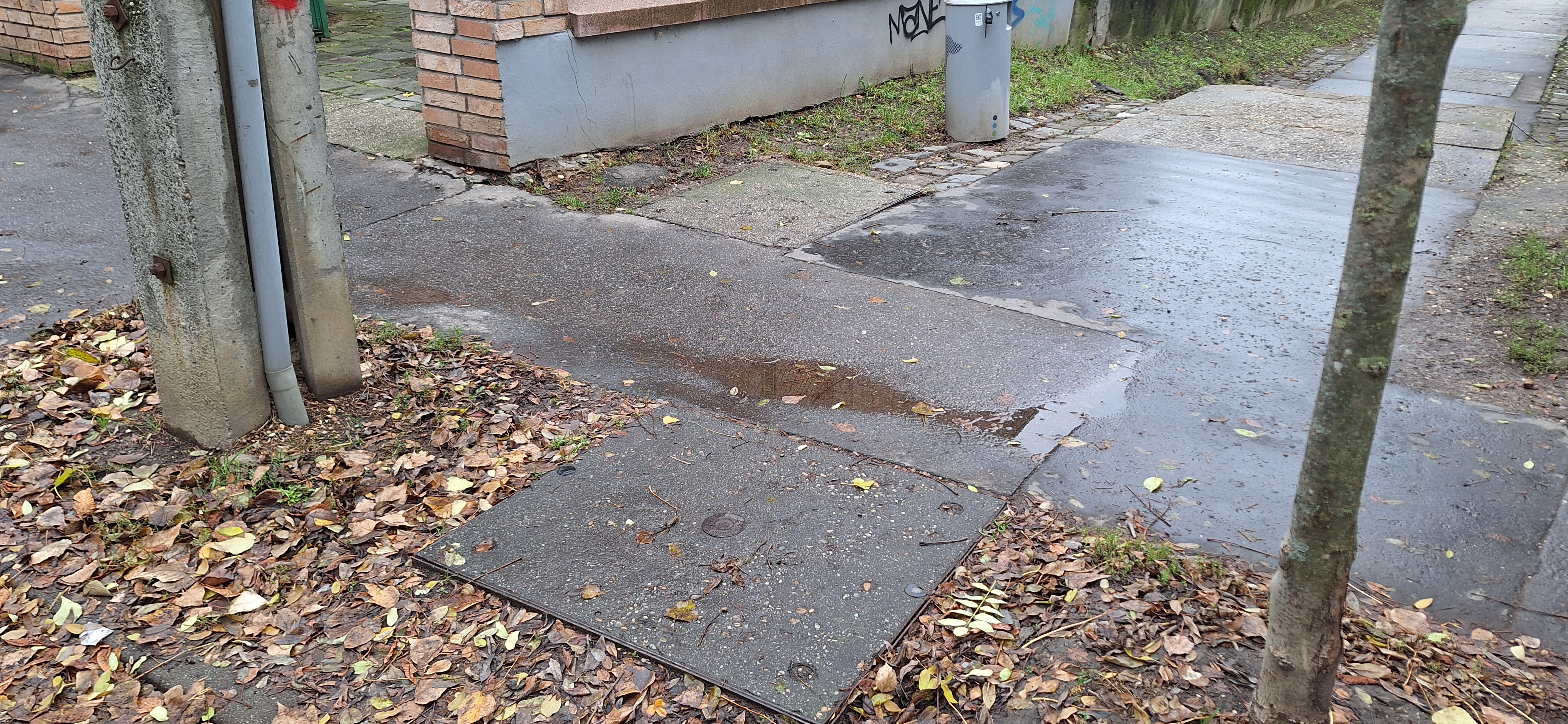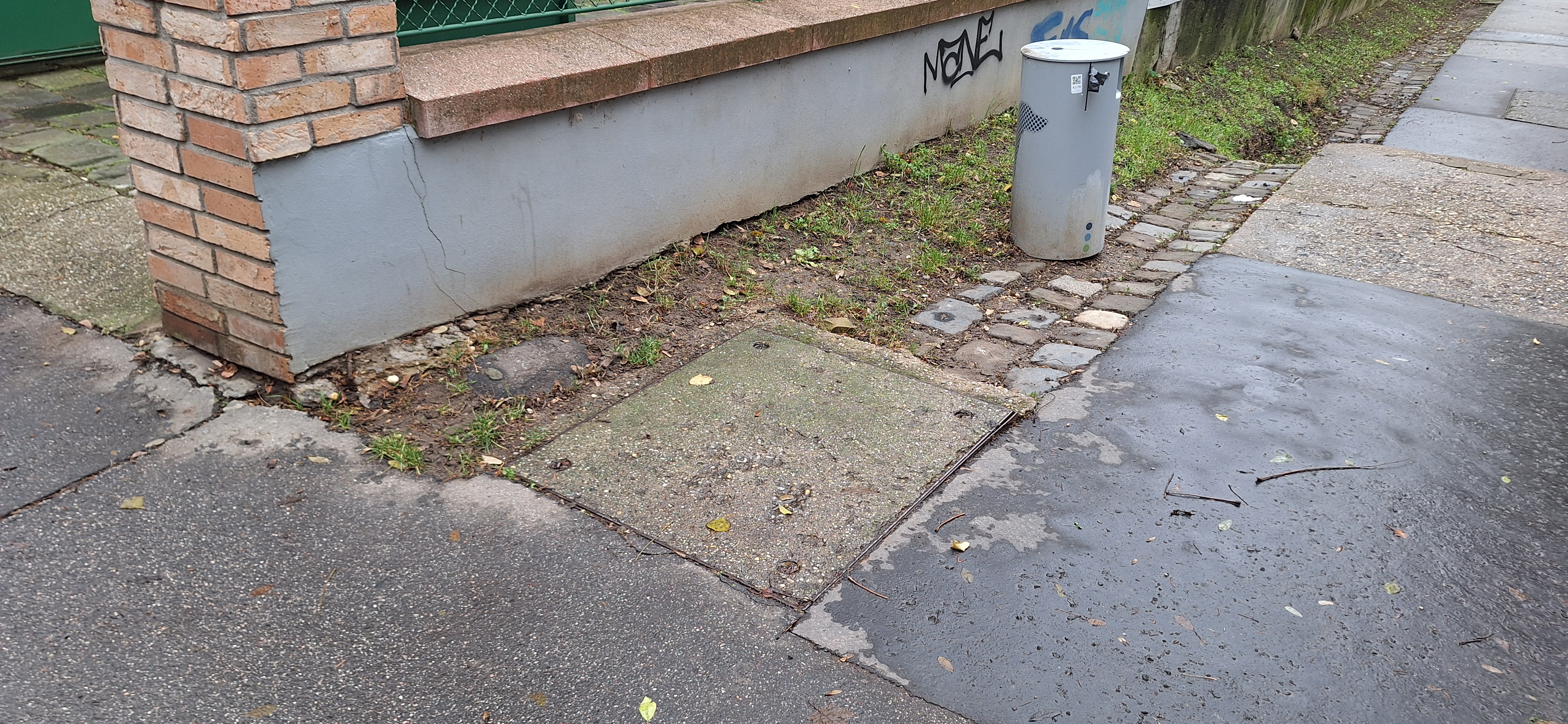 A Ménesi út 26. szám- Bartoniek G. lépcső sarkánál lévő felirat nélküli fedlap erodált, kilyukadás előtti állapotba van, amennyiben lehetséges szeretnénk kérni a cseréjét.