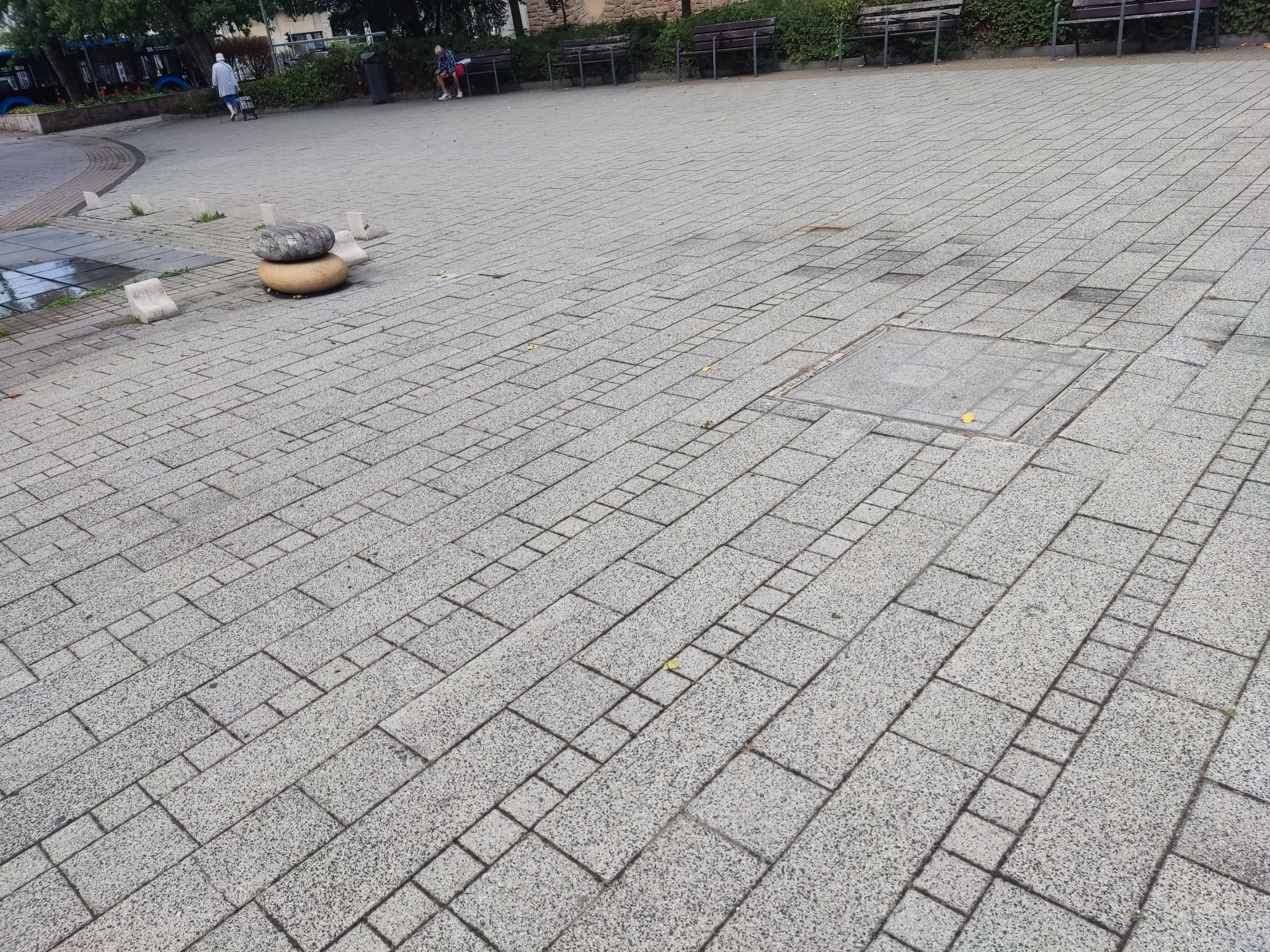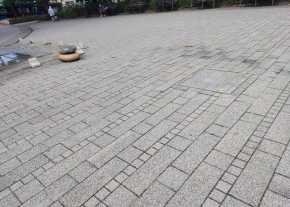 Sérült fedlap (szökőkút gépészete?) - A kimozdult térkő botlásveszélyes.