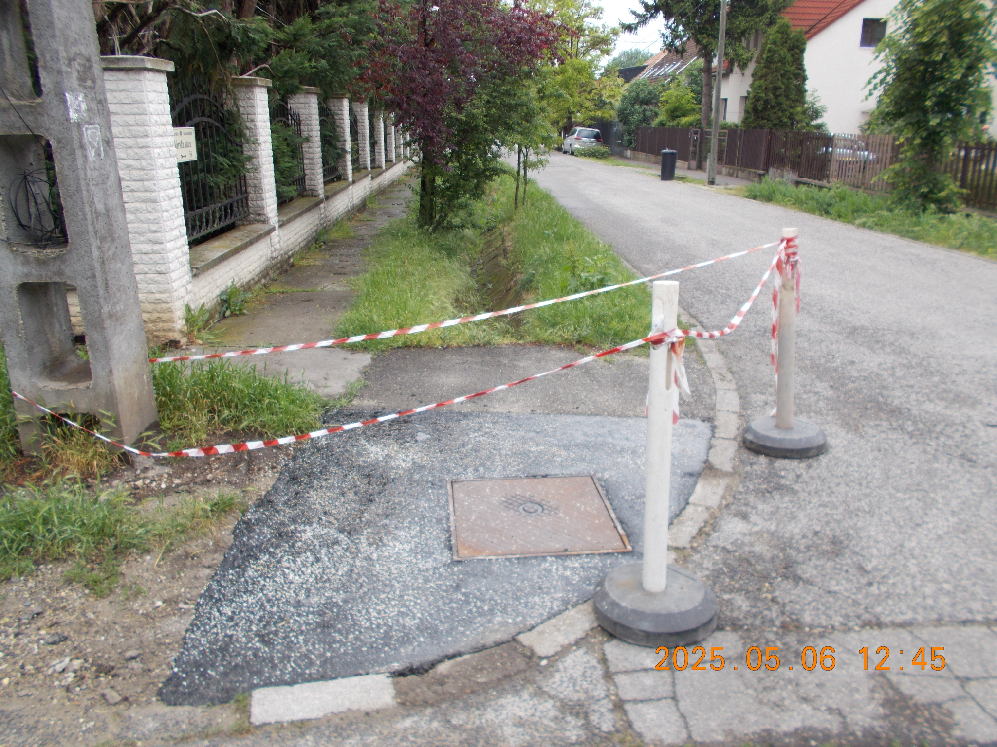 1162 Budapest Ida utca-Hársfa utca kereszteződésben megsüllyedt az aknafedél.