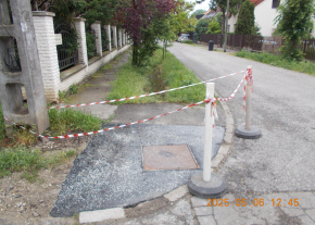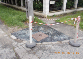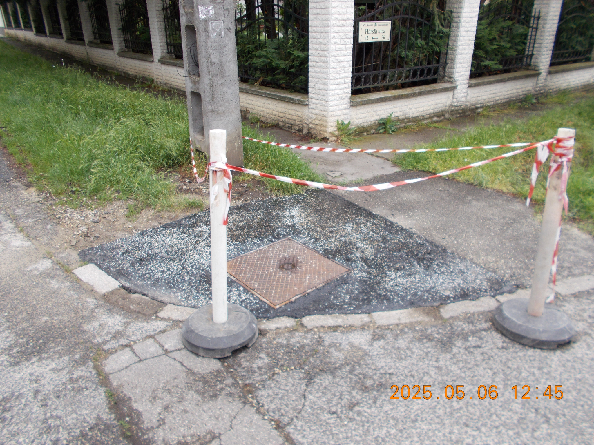 A megsüllyedt aknafedlap és járda javítását a kivitelezőtől megrendeltük.