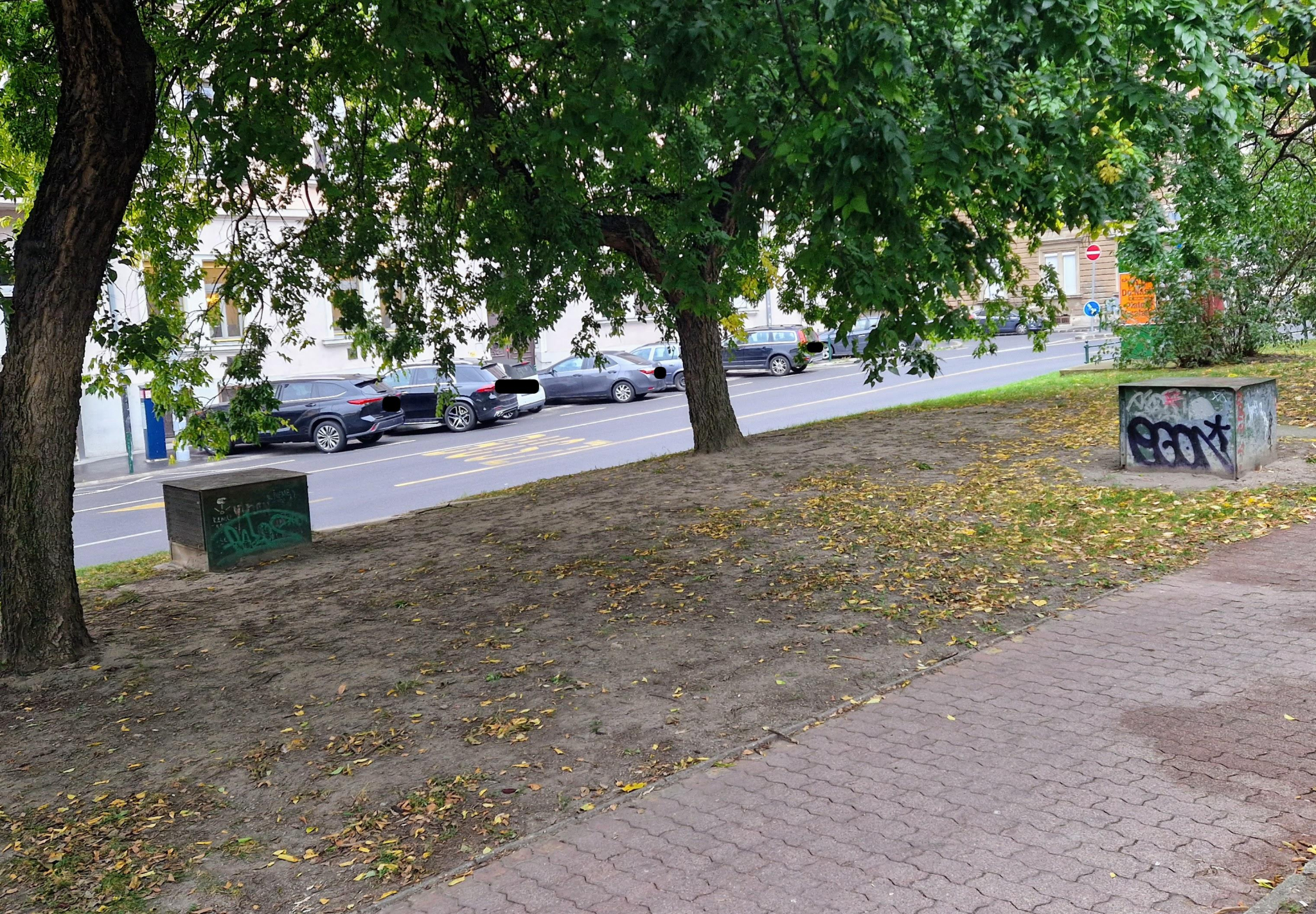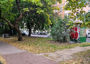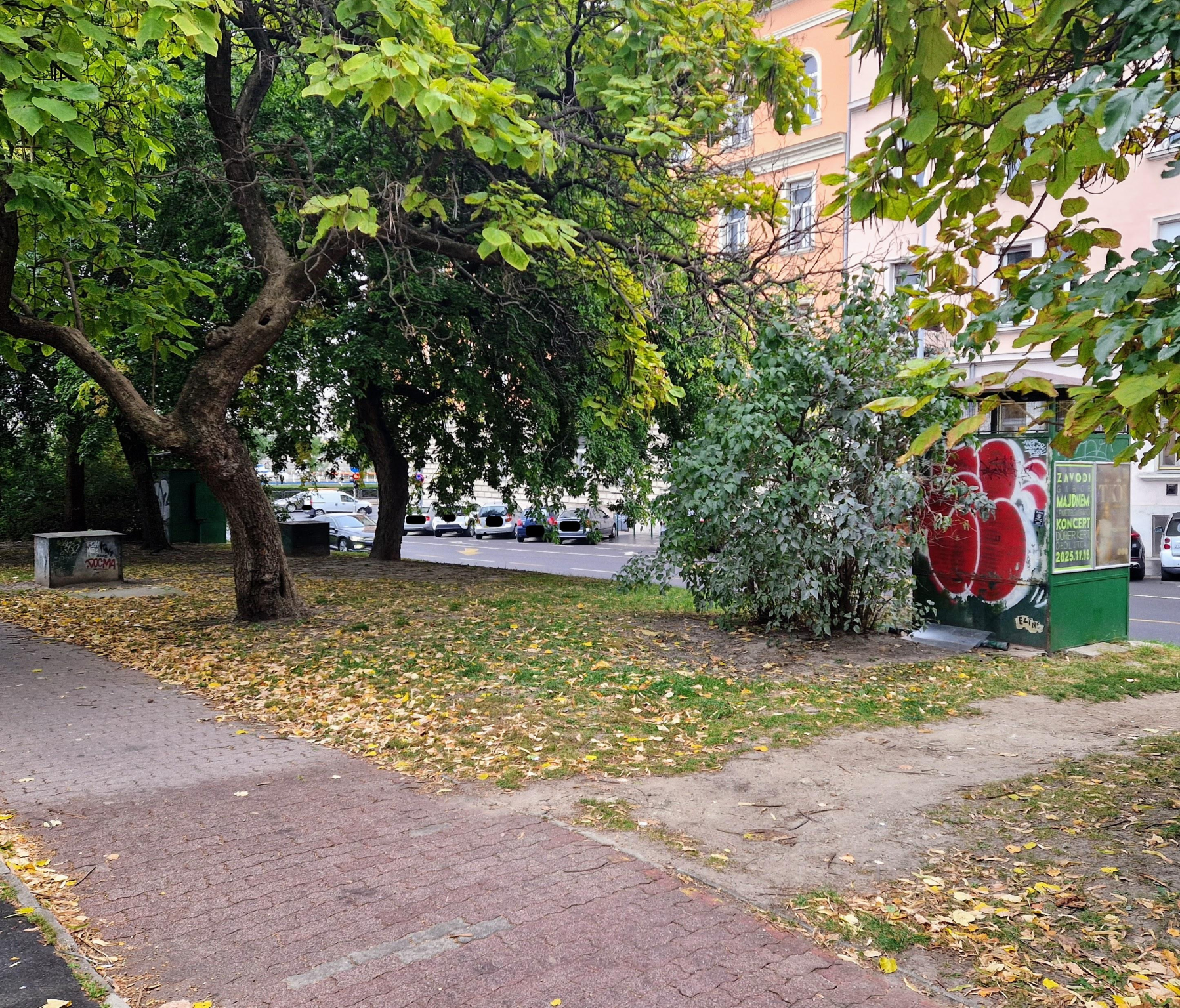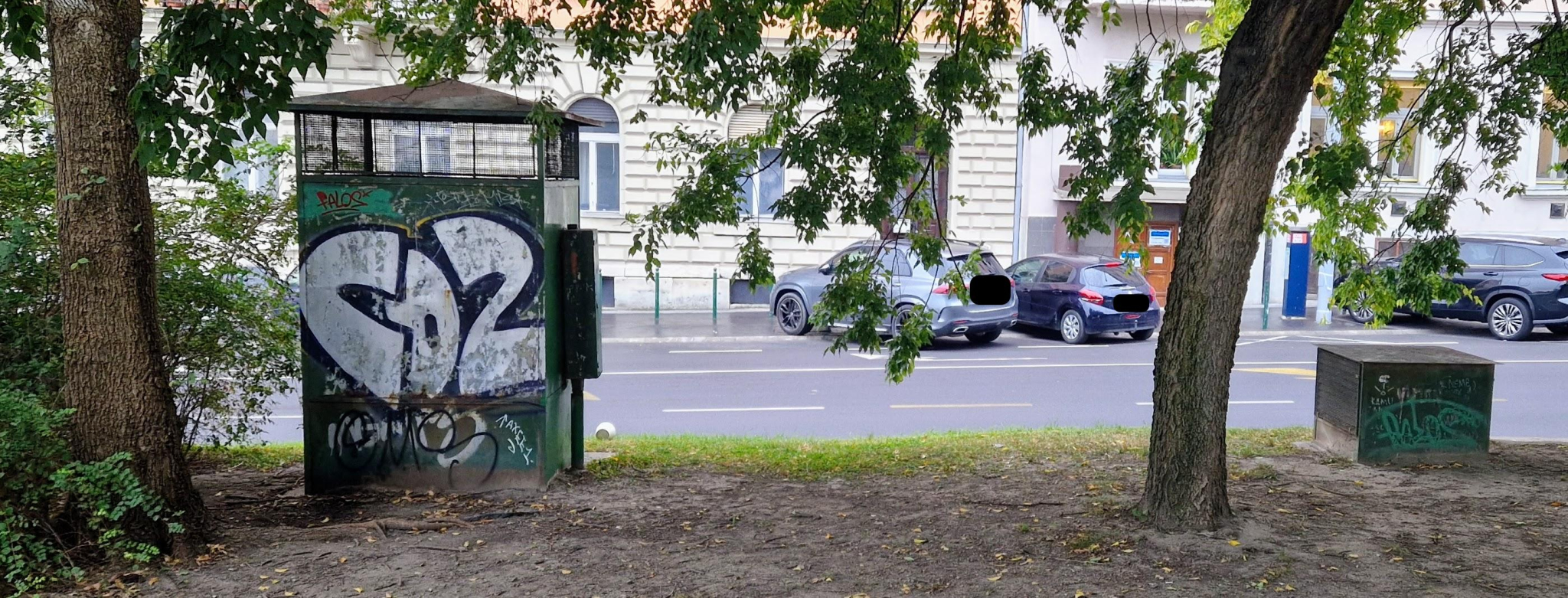 A Gyóni Géza téren található több ELMŰ cimkés közműszekrény, mely rozsdás, koszos és erősen graffitis. A 2 nagy szekrény szépen le volt festve, ám a park felőli oldaluk valahogy ki lett hagyva.