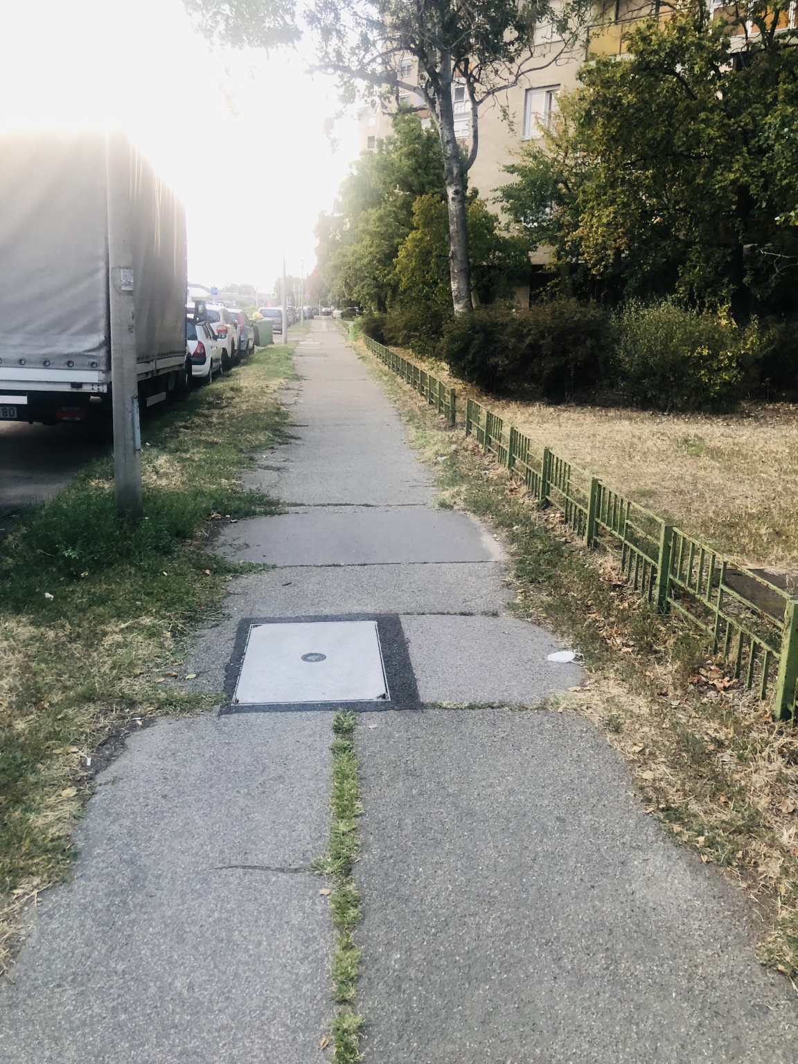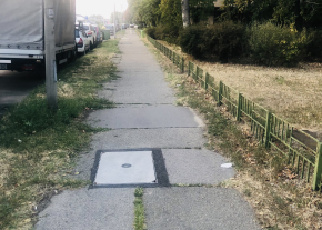 A XX. kerület, Helsinki út 36. előtti járdán a sérült, megsüllyedt fedlap javítását a Társaságunk megrendelte.