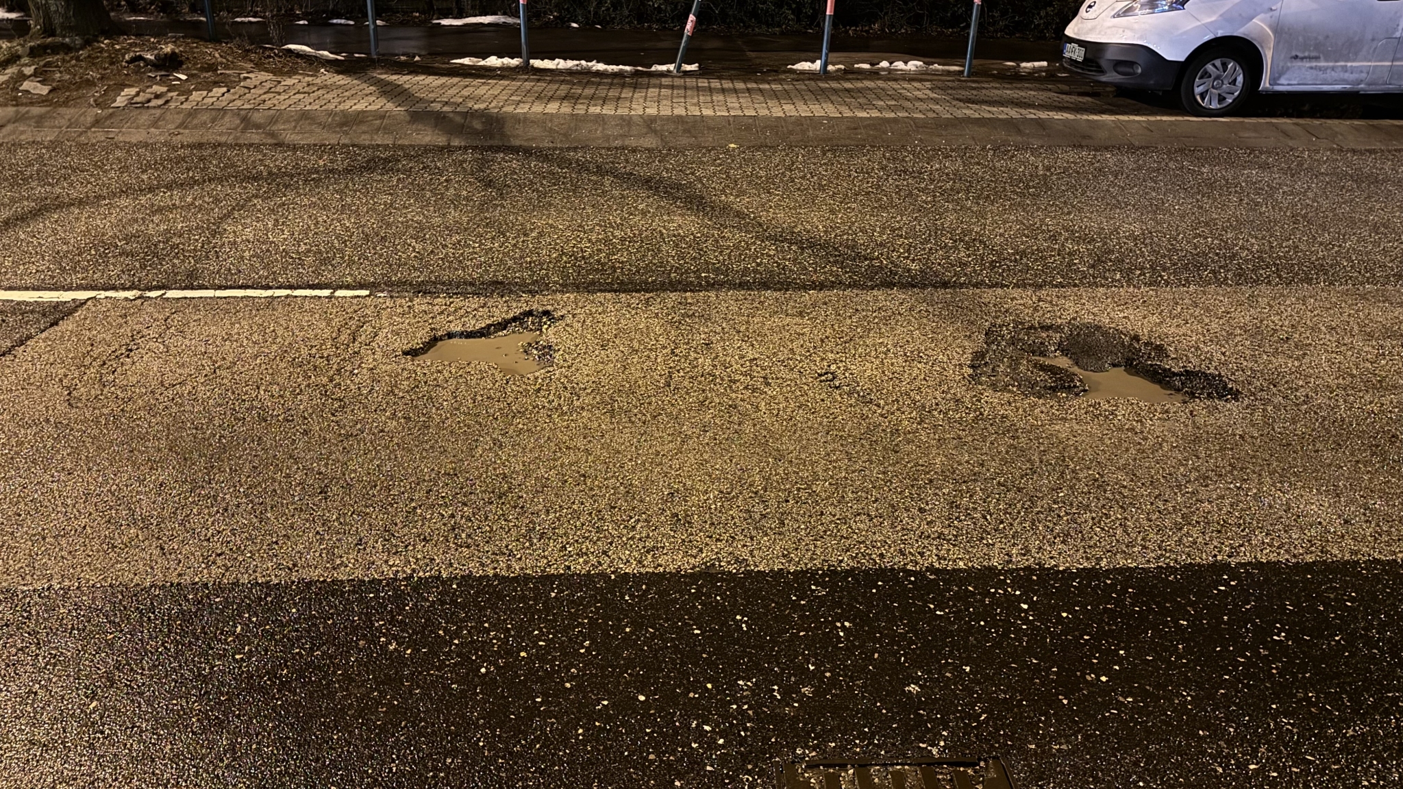 Kátyú az új úton