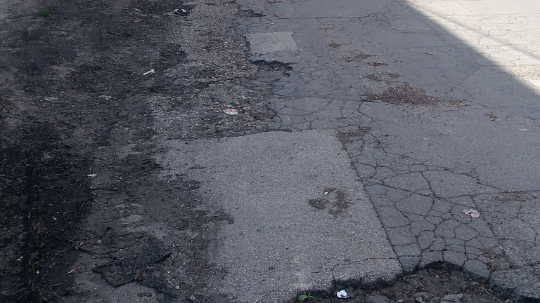 Rengeteg kátyú végig az utcában