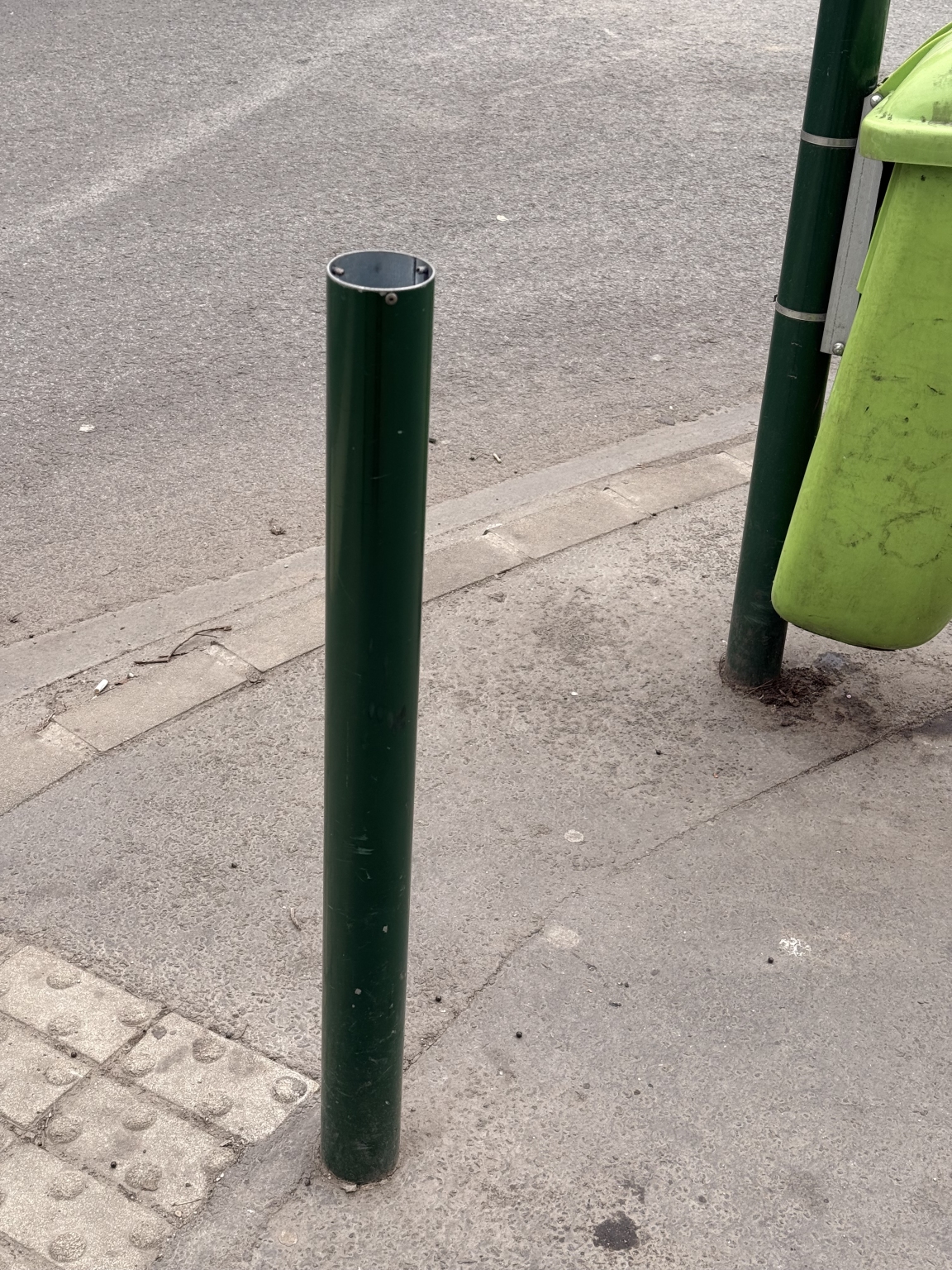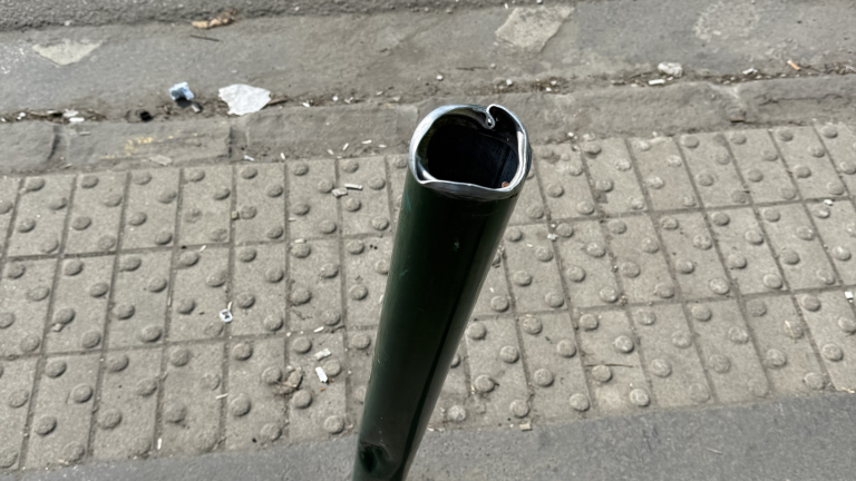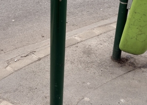 Hiányzik az oszlopok teteje, ami így balesetbeszélyes. Pótolni kellene, mielőtt elvágja valakinek a kezét vagy kiszakítja a ruháját.