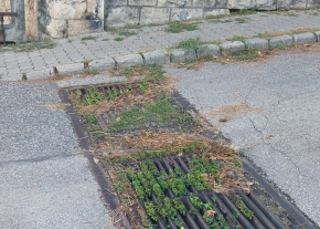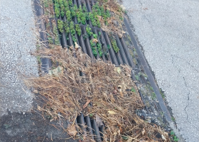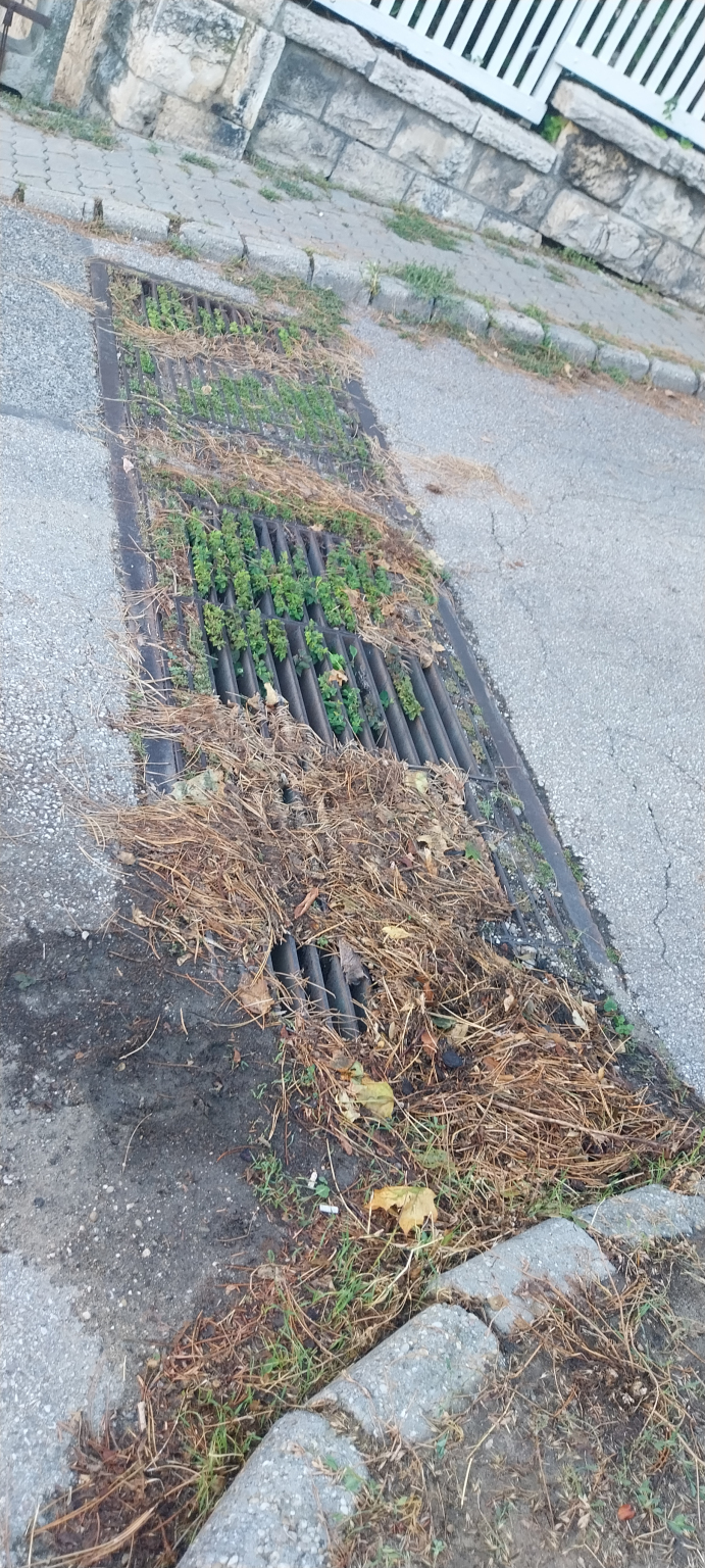 A zöldhulladék és egyéb szemét eldugaszolta a vízelnyelőt.