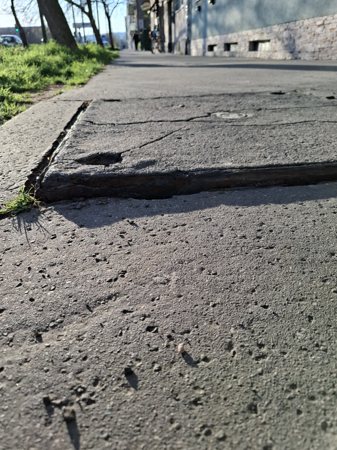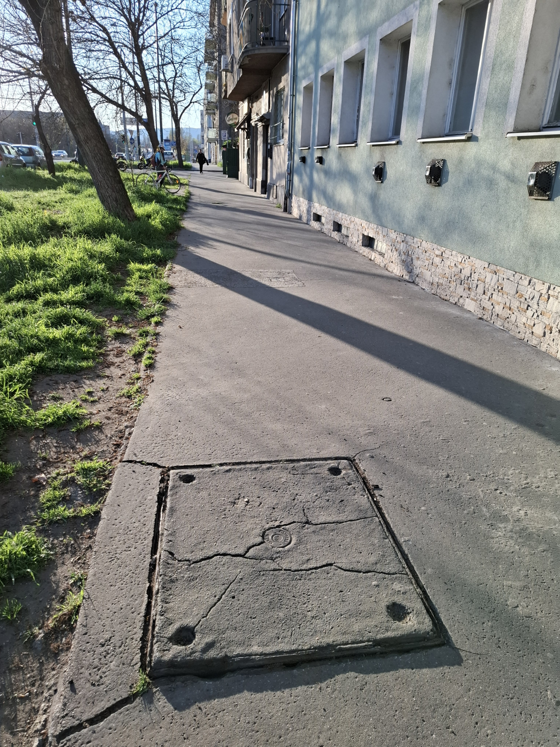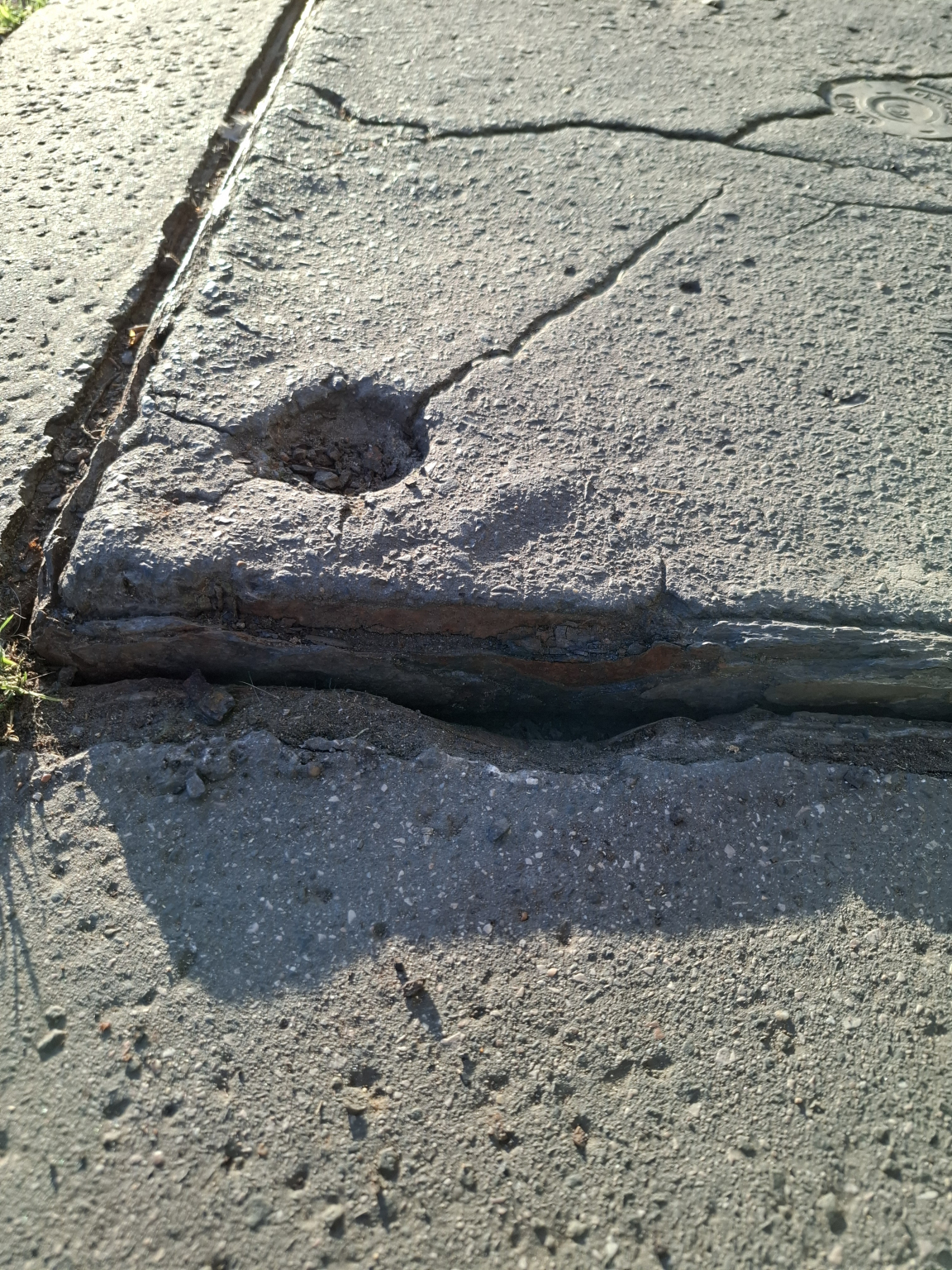 A fedlap a járda szintjétől nagyban eltér, botlásveszélyes. Kerete rozsda ette.