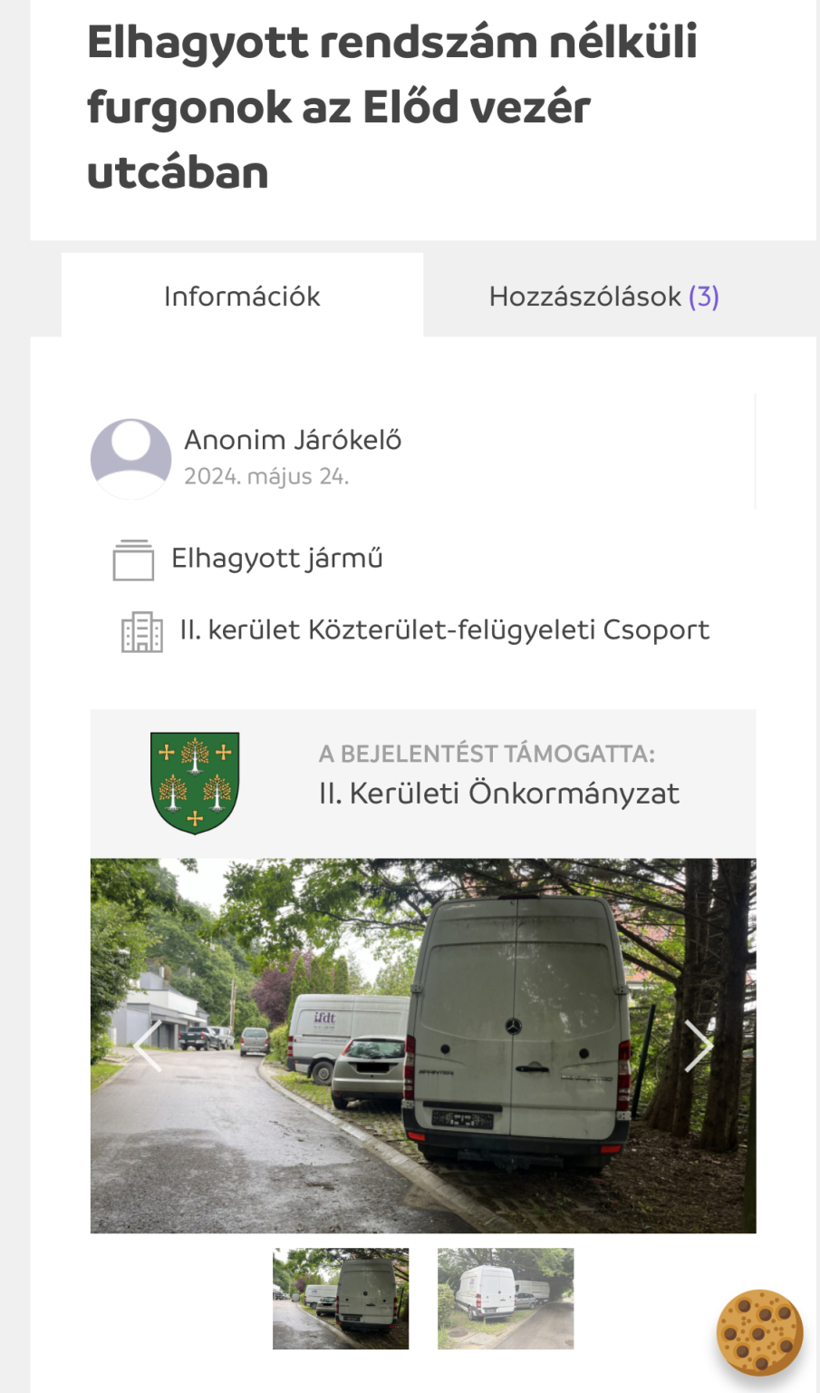 Köszönjük visszajelzésüket, jeleztük városrendészeink számára újból a visszatérő gépjárművet.