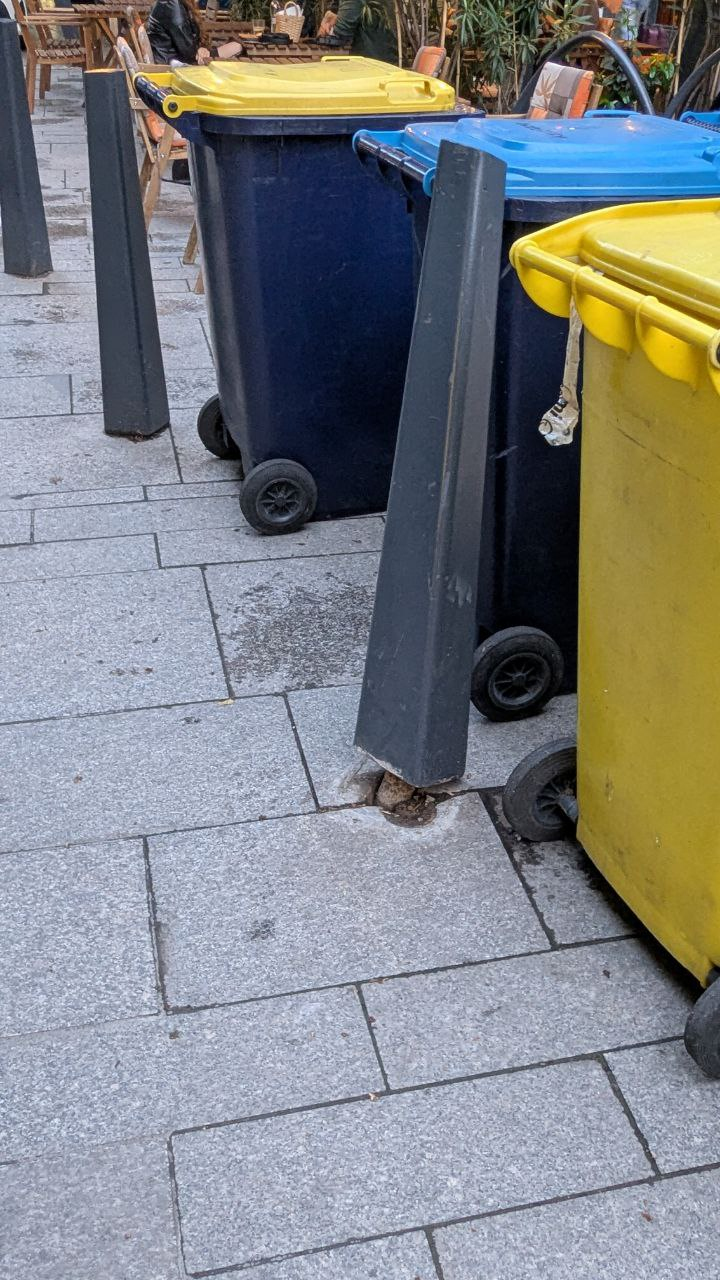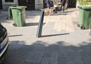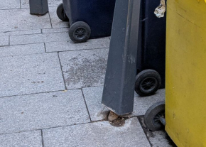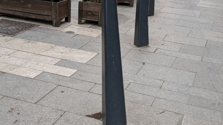 Kidöntött poller. Kérem, javítsák meg vagy távolítsák el őket. Köszönöm.