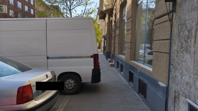 Balkáni állapotok vannak abban az utcában, ahol egyébként a kerületi rendőrkapitányság is található. Ma reggel a túloldali járdát egy kisteherautó teljes szélességében elparkolta.”