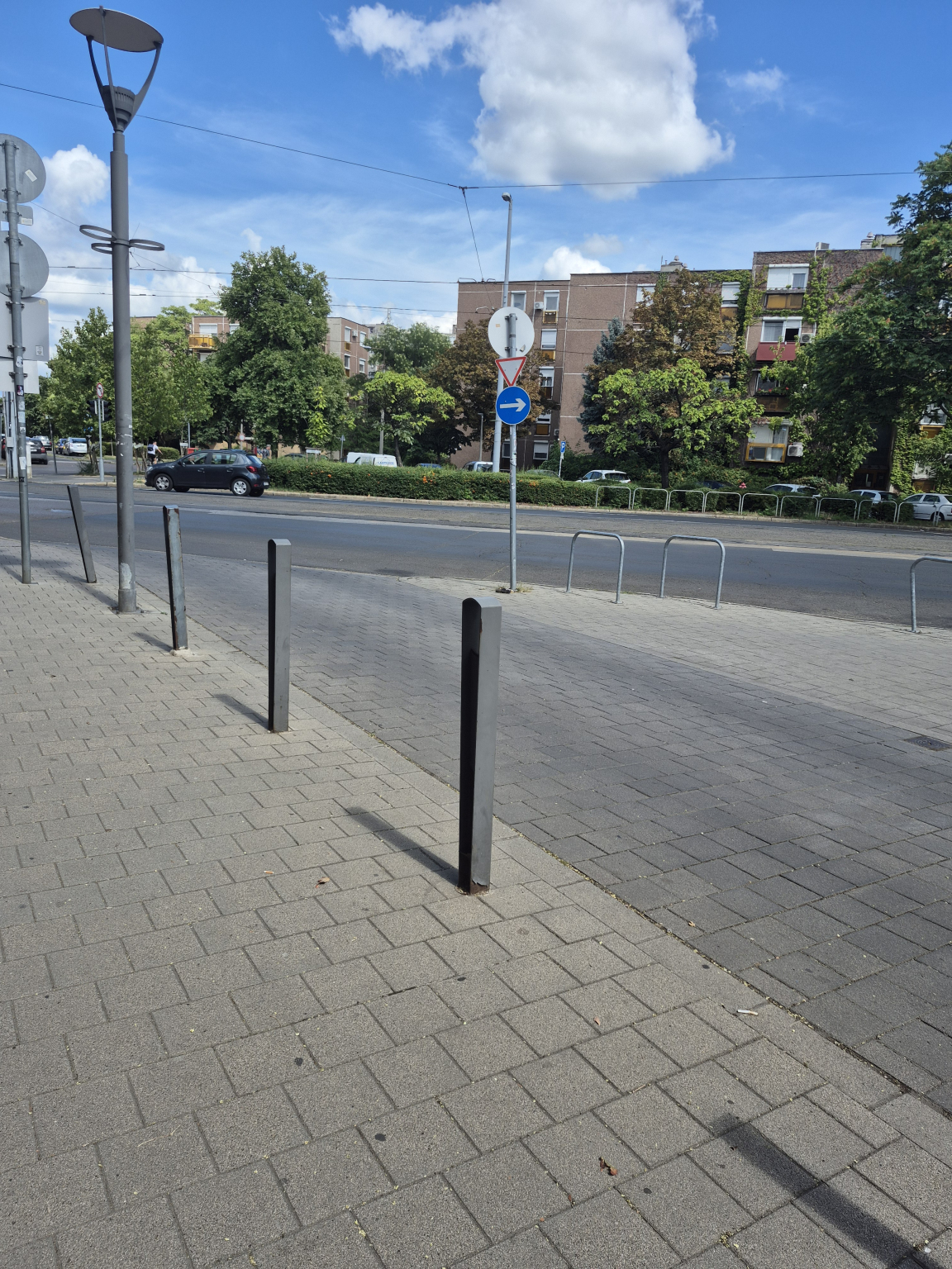 A táblákat tartó oszlop nagyon ferdén áll.