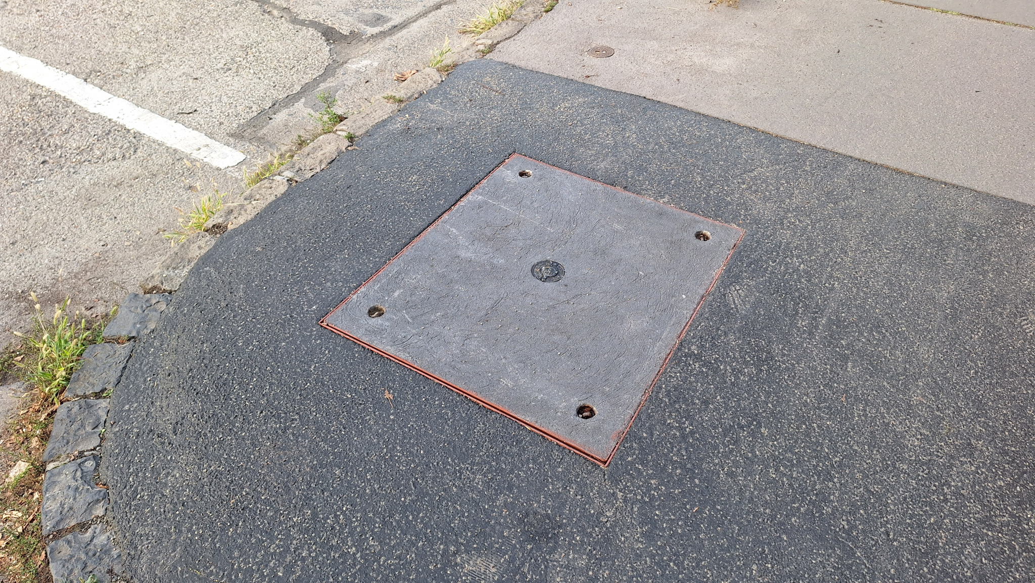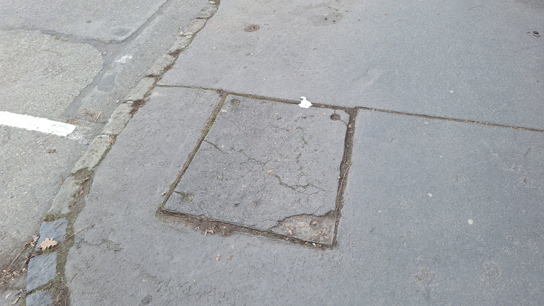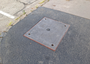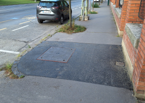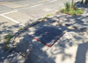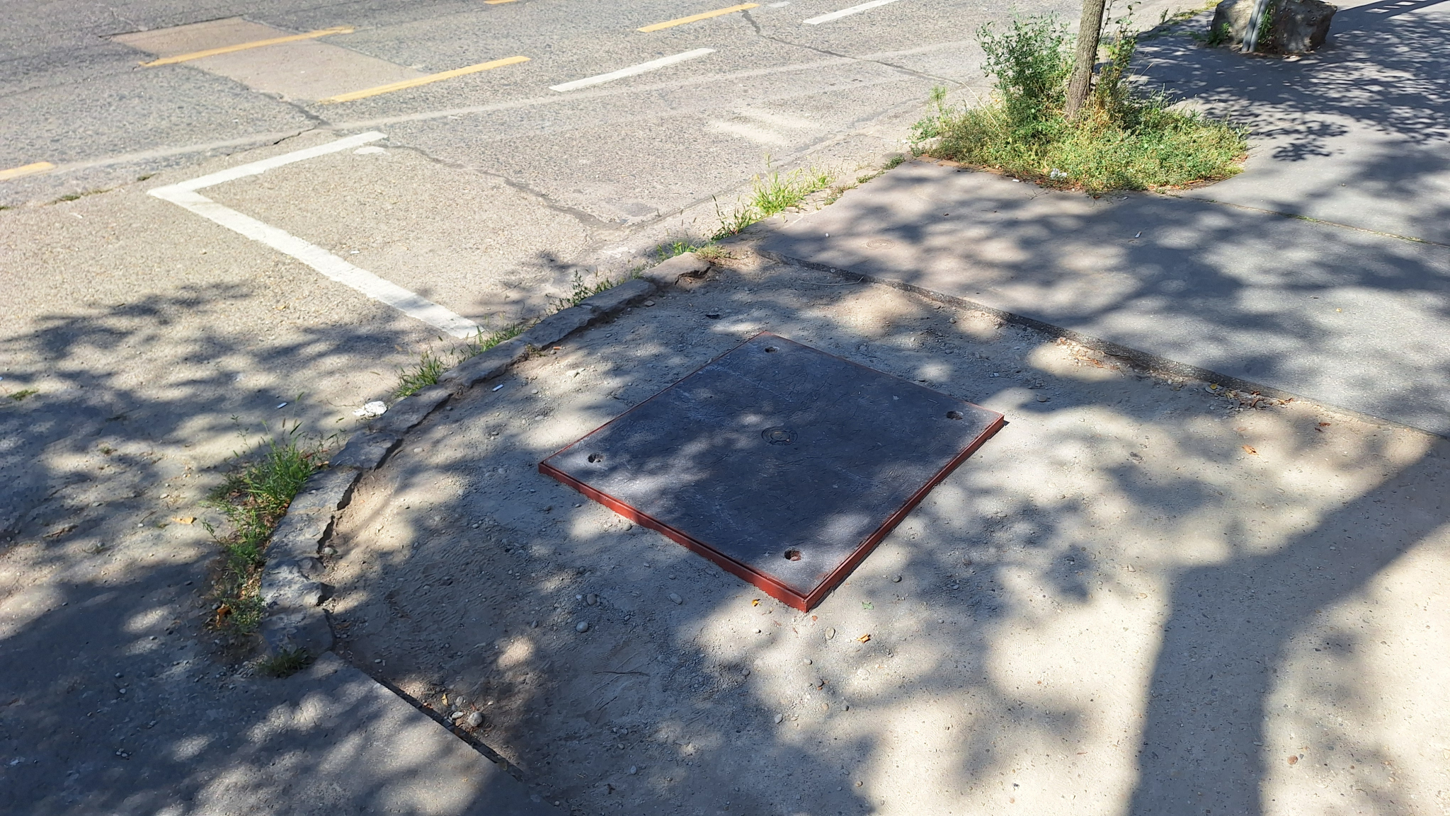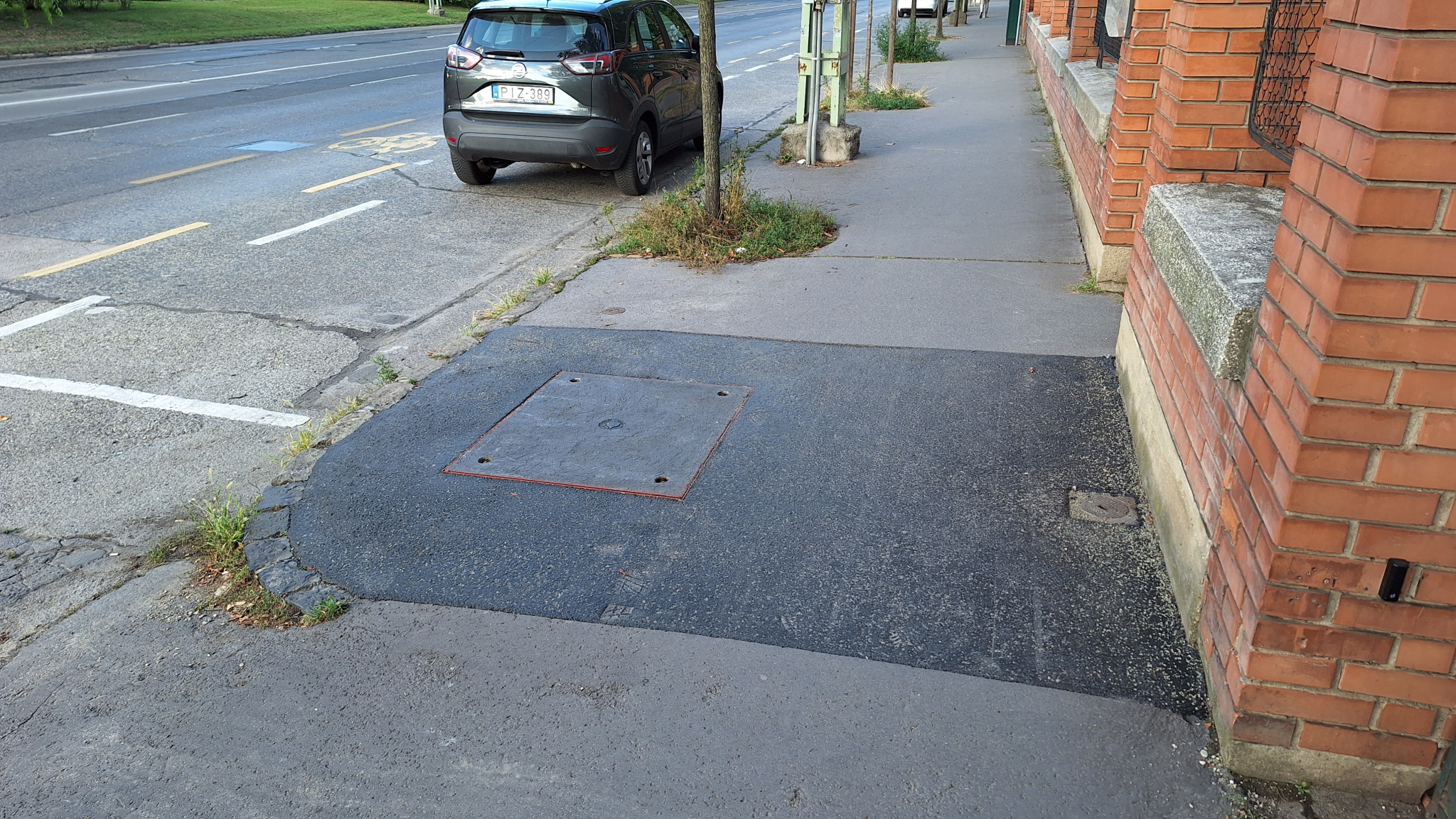 Az Ajtósi Dürer sor 27b előtt van egy sérült aknafedél.