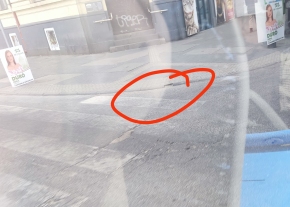 Kitört, hiányzó szegélykő a zebránál