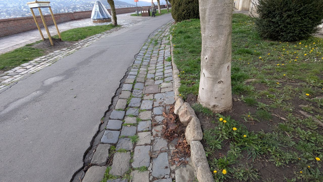 Törött szegélykő. Kérem, javítsák meg. Köszönöm.