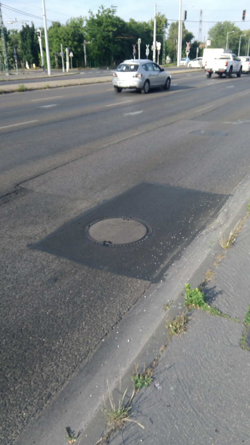 Kérem az illetékest, hogy a képen látható aknafedél tányérját rögzítsék megfelelően, mert minden autó áthaladásakor csattan.