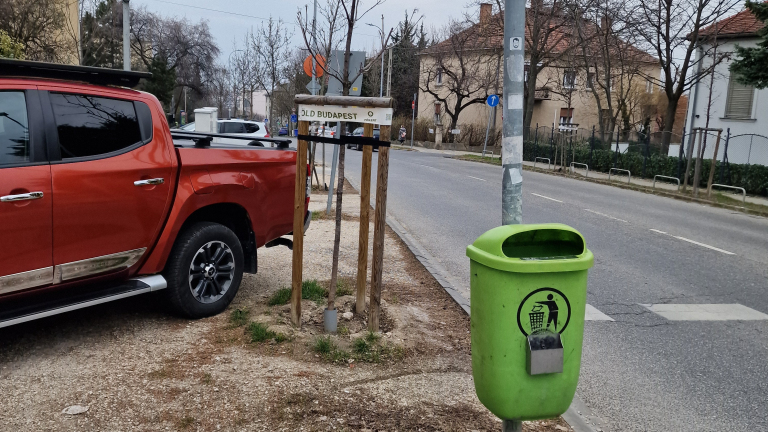 Járókelő ügykezelő megjegyzése: "Látszólag sem közlekedési tábla, sem felfestés nem engedélyezi a zöldfelület-szerűn parkolást."