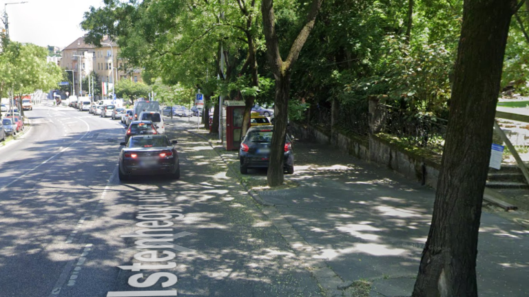 Képként egy Street View-kivágást tudok mellékelni, időpont nincs hozzá, de ahogy nézem a környék további akkori képeit, ez is a leírt helyzetben készült. Bár nem látszik hosszú sornak, valószínűleg 3 zöldet kellett várni tök fölöslegesen akkor is.
