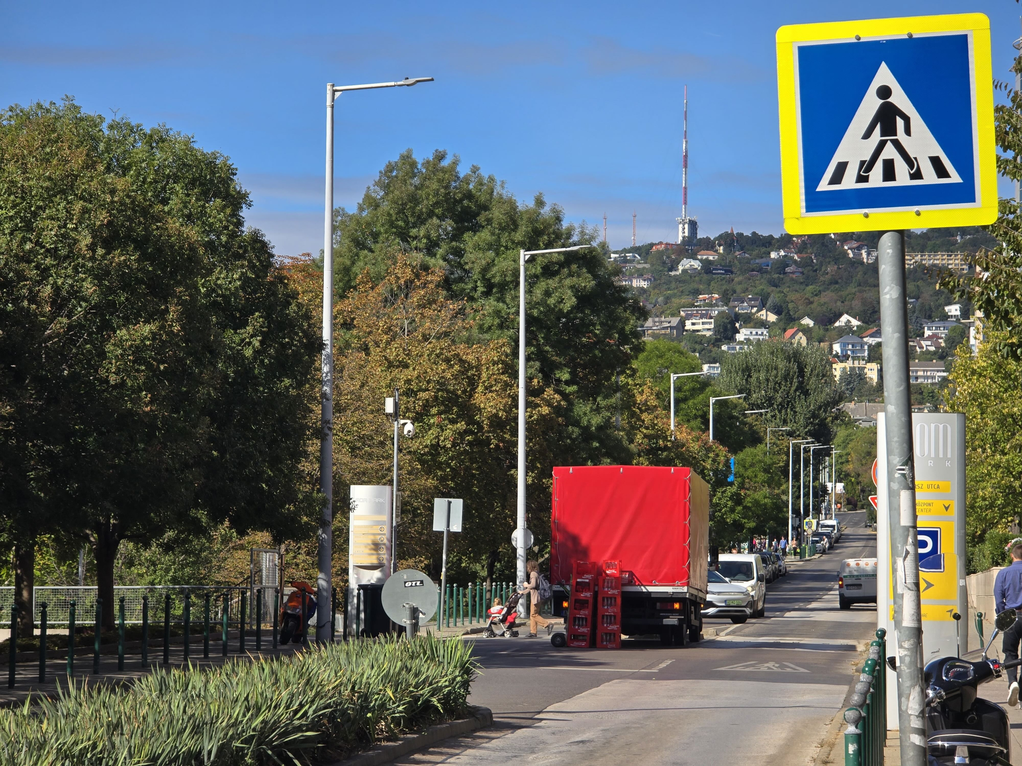 A Csörsz utcában rendszeresen parkolnak az út közepén lévő kanyarodósávban, ami kiemelten balesetveszélyes, mert a képen is látni, hogy az átkelő kislányt teljesen takarná az autó, ha ő épp jobbra menne, és belegondolni is rossz, mi lenne ha alulról egy fittipaldi autós jönne - amiből sajnos errefelé nincs hiány.