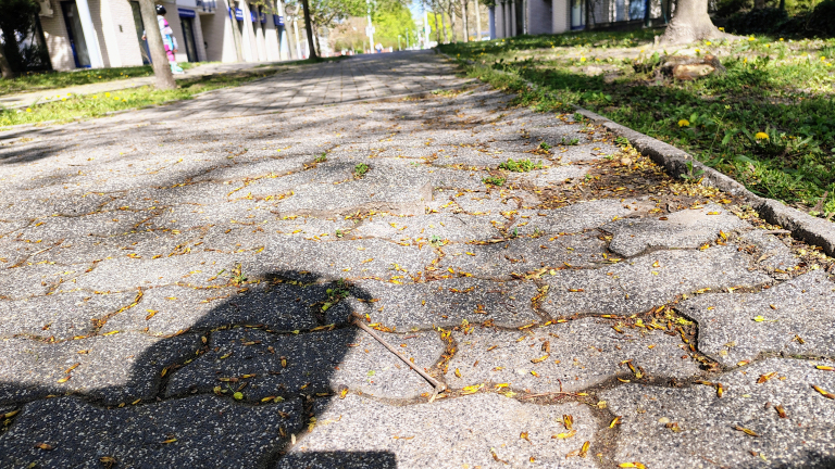 Viacolort a fák gyökerei felnyomják. Gyerekek elesnek görkorcsolyával , rollerrel.