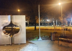 Hibás lámpa az emlékmű mögött. A lámpa teljes felső, ledes része hiányzik. Köszönjük a javítást.