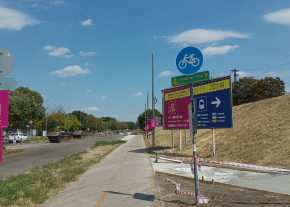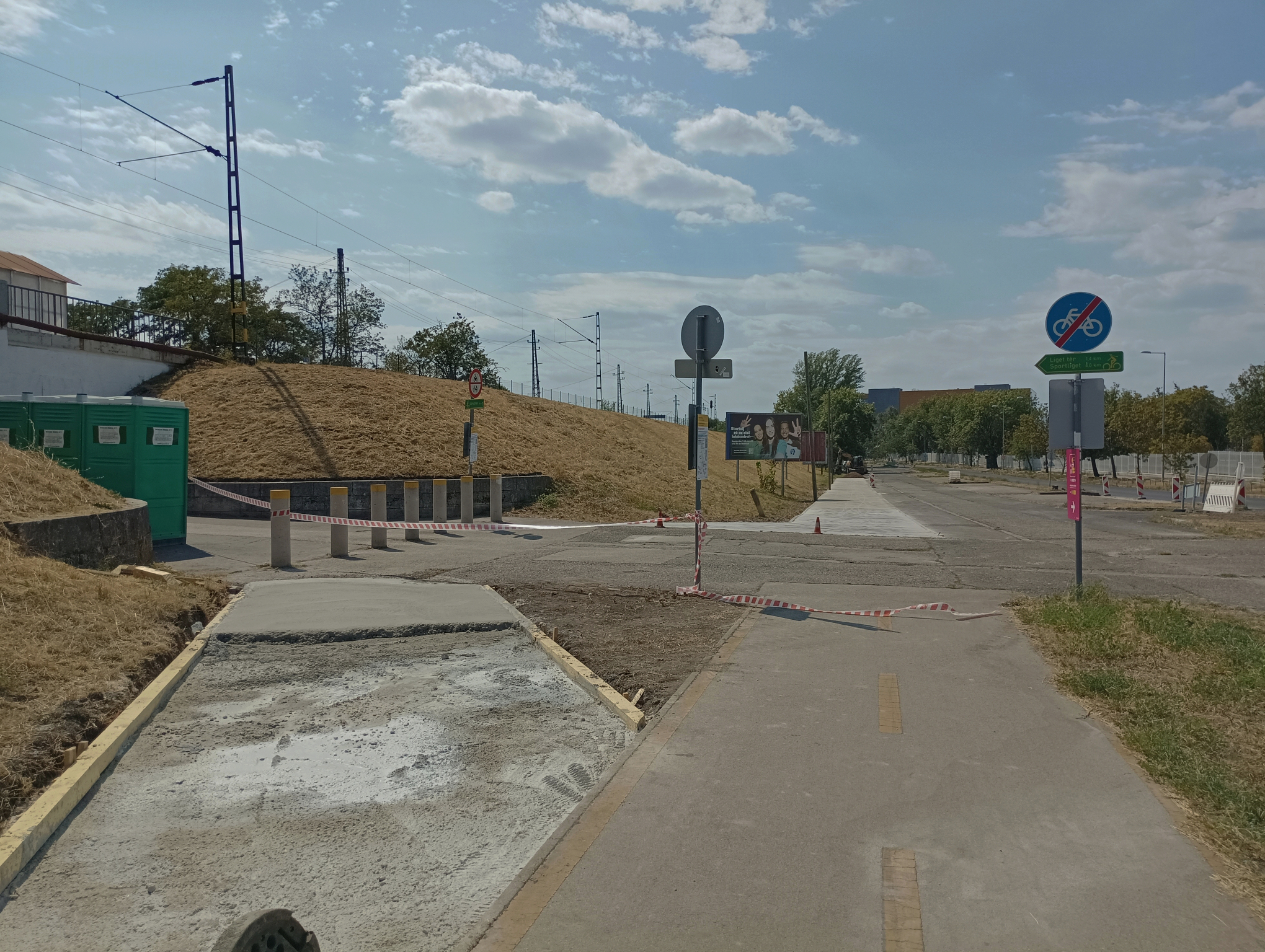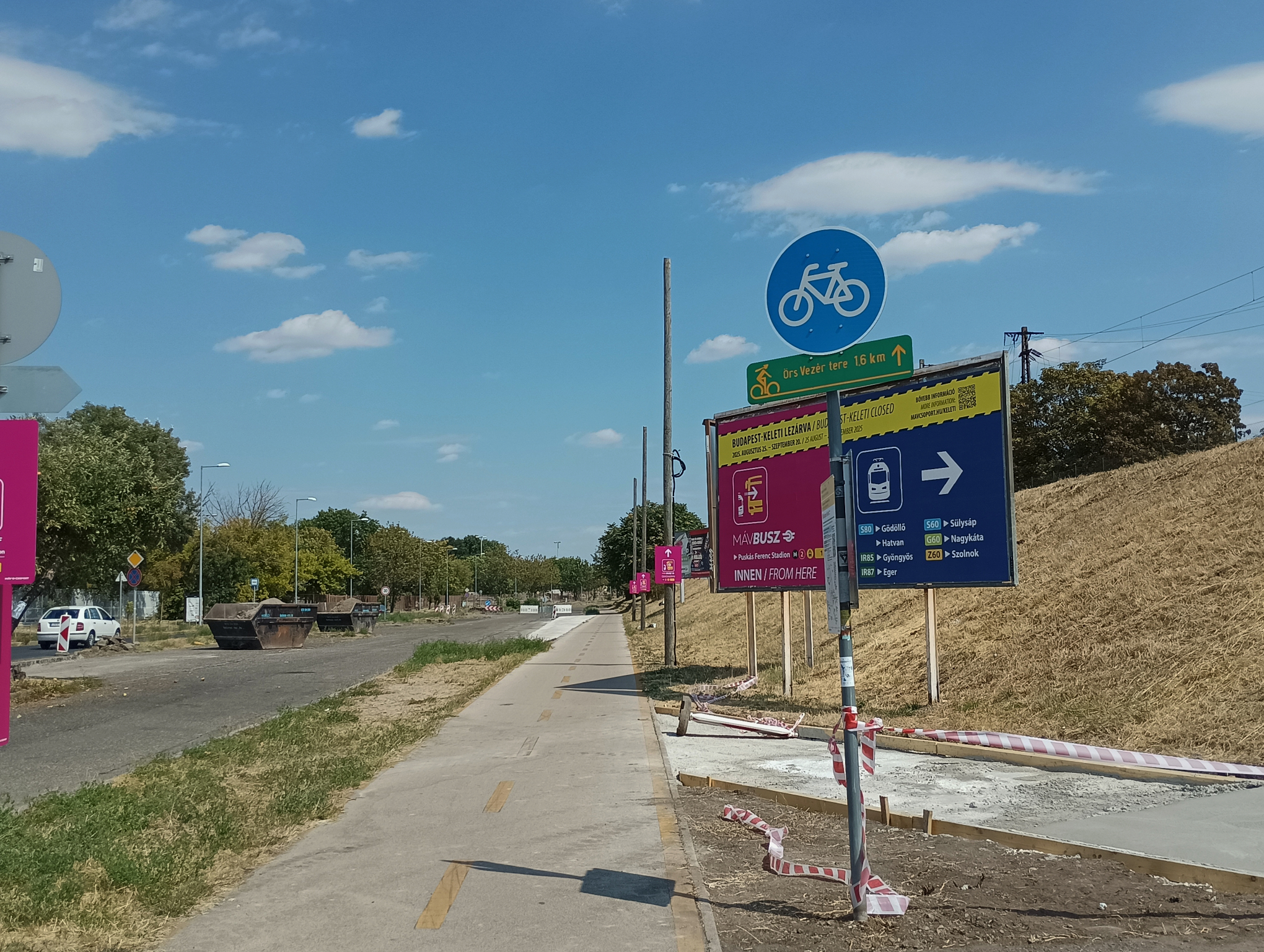 Kőbánya felső vasútállomásnál kopott a Kerékpárút eleje és a vége tábla is.