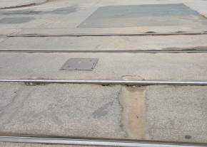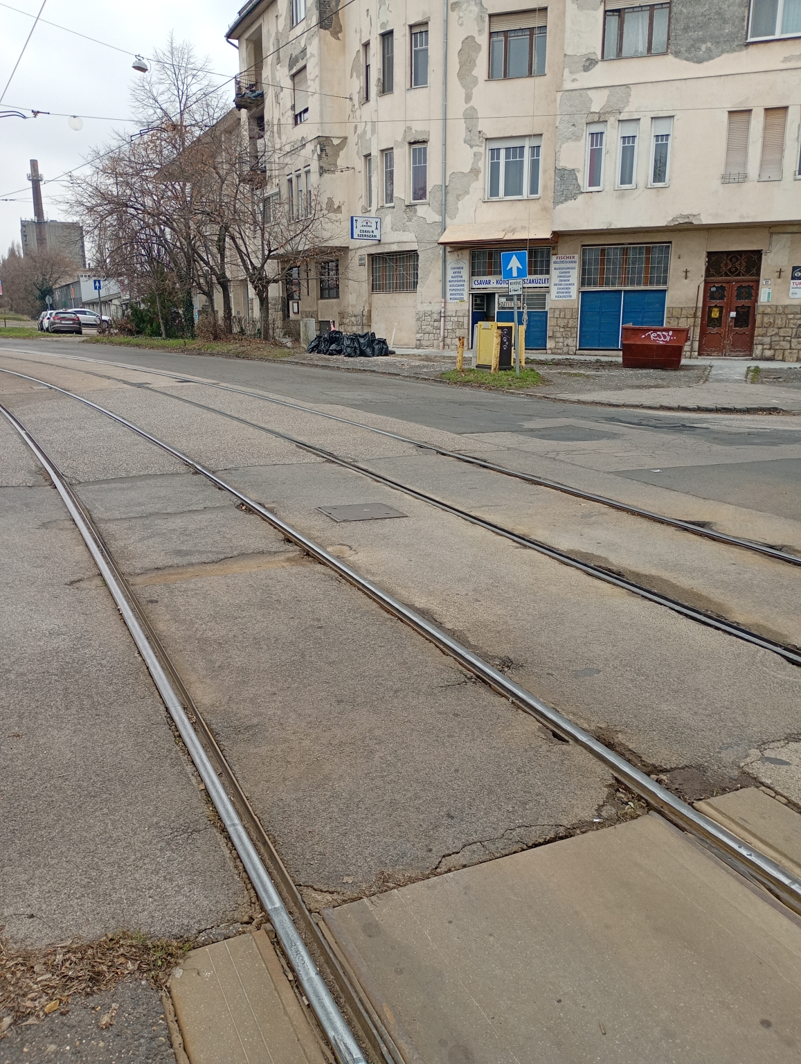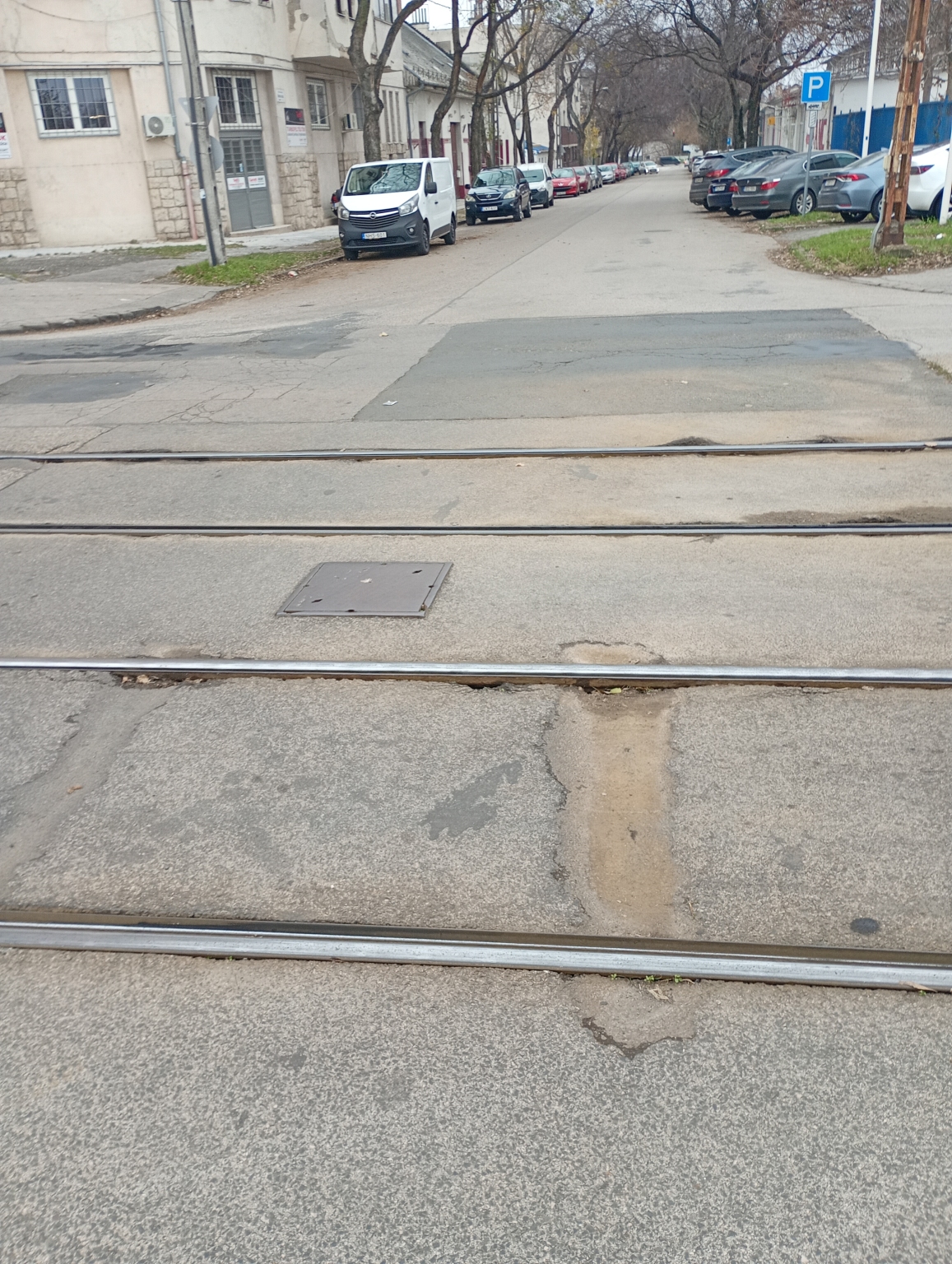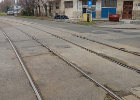 Kátyúk és lyuk a villamossín mellett