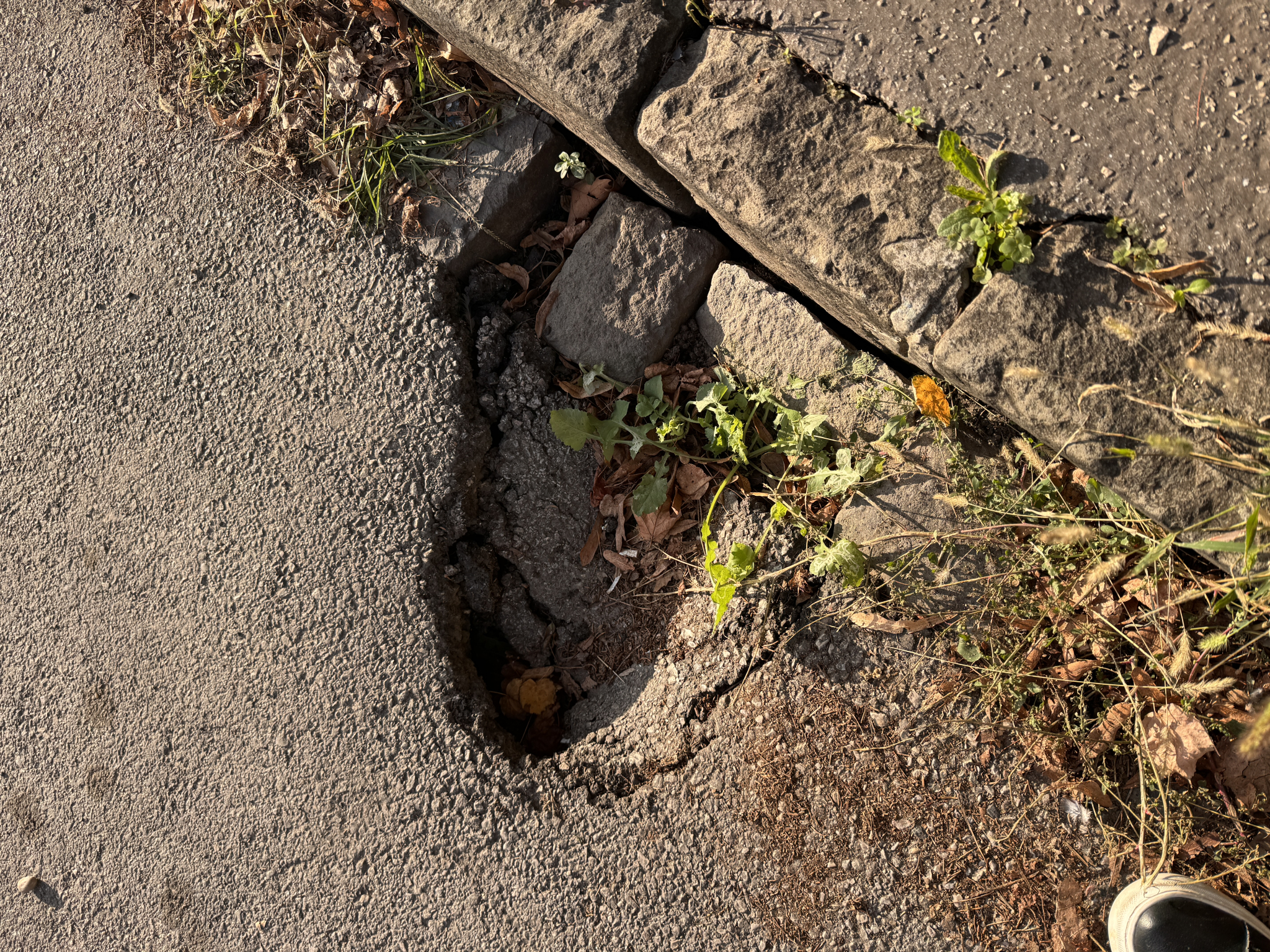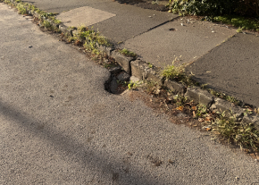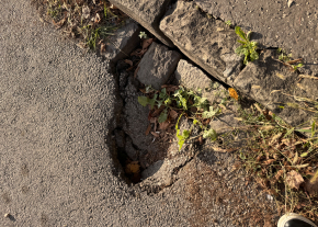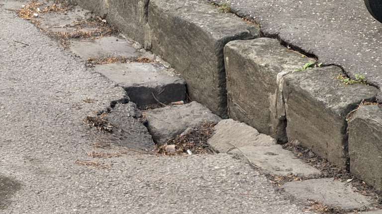 Beszakadt útburkolat járda és úttest talalkozasanal