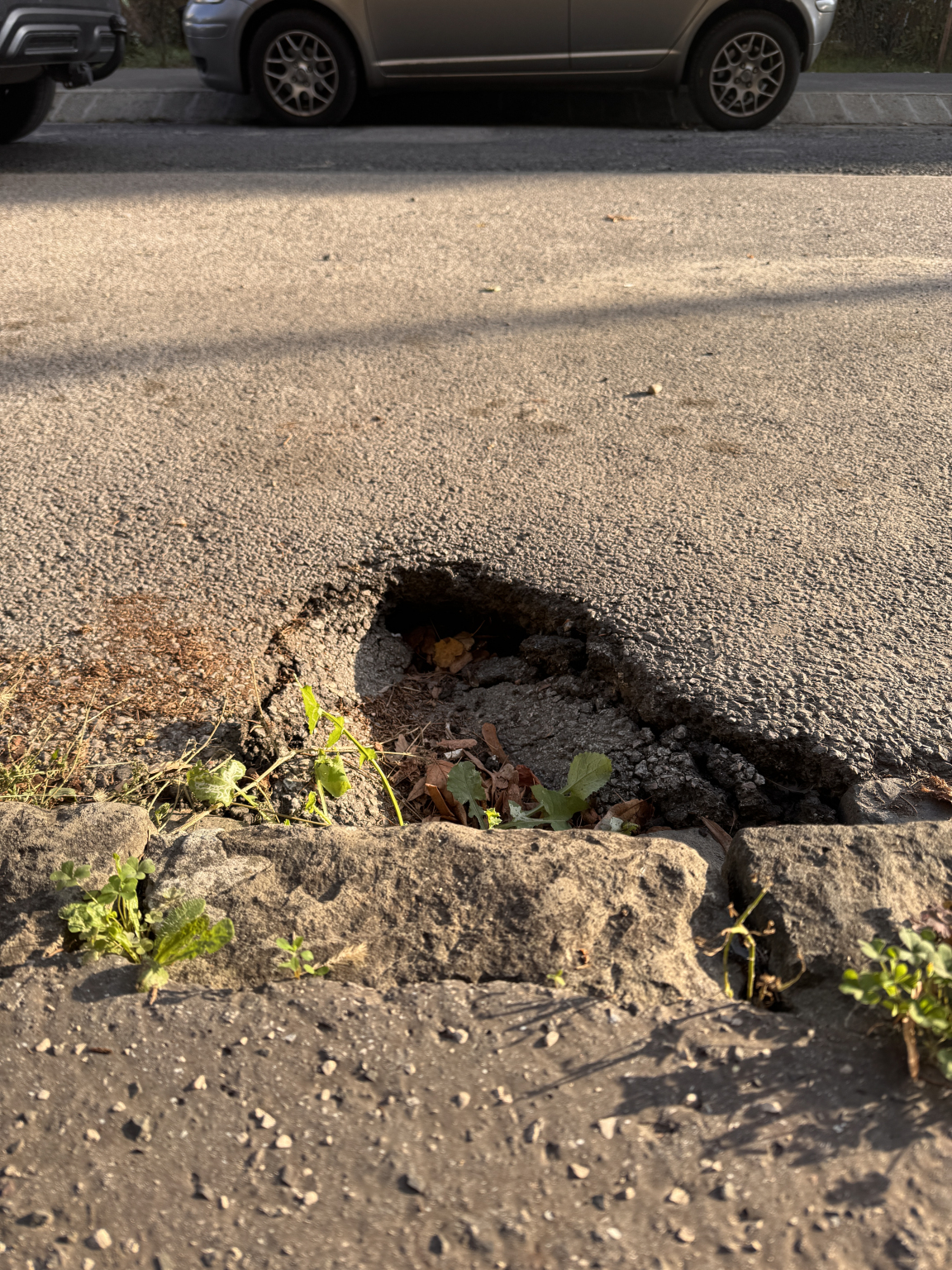„Ez a jelen állapot. A kráter egyre mélyebb az aszfalt már beszakadt. Kérem tegyenek valamit míg valamelyik parkoló autó meg nem sérül.”