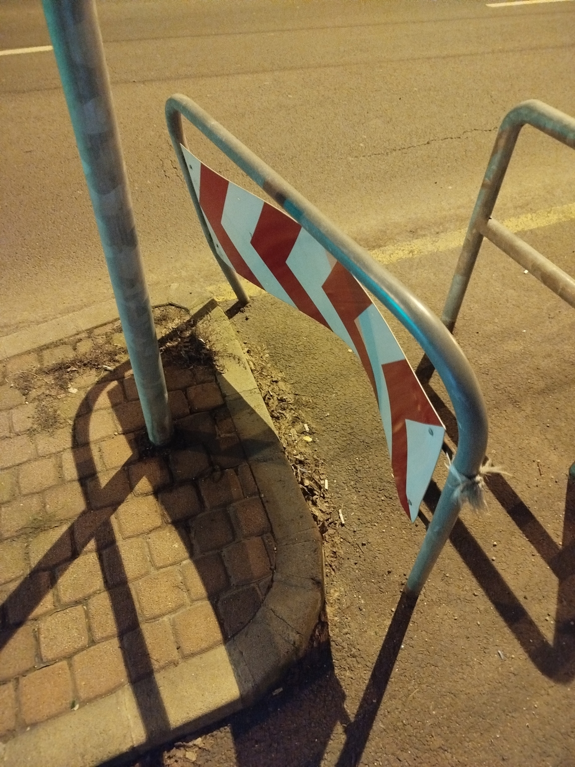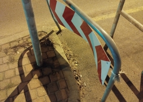Megrongált terelő a kerékpár parkolónál. Köszönjük a javítását.