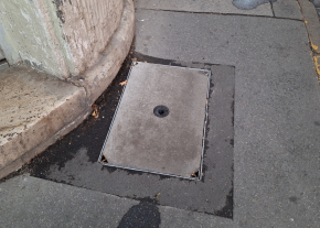 A VIII. kerület, József krt. 28.-Bérkocsis u. sarkán a sérült, megsüllyedt fedlap javítását Társaságunk megrendelte.