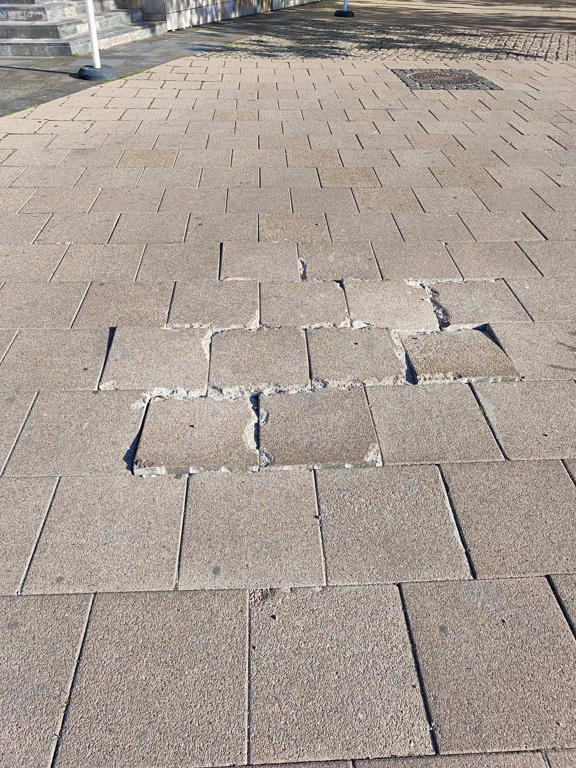 Kérjük a Nemzeti Színházat, hogy a MüPa előtti nagyelemes térburkolatú utat javítsa ki.