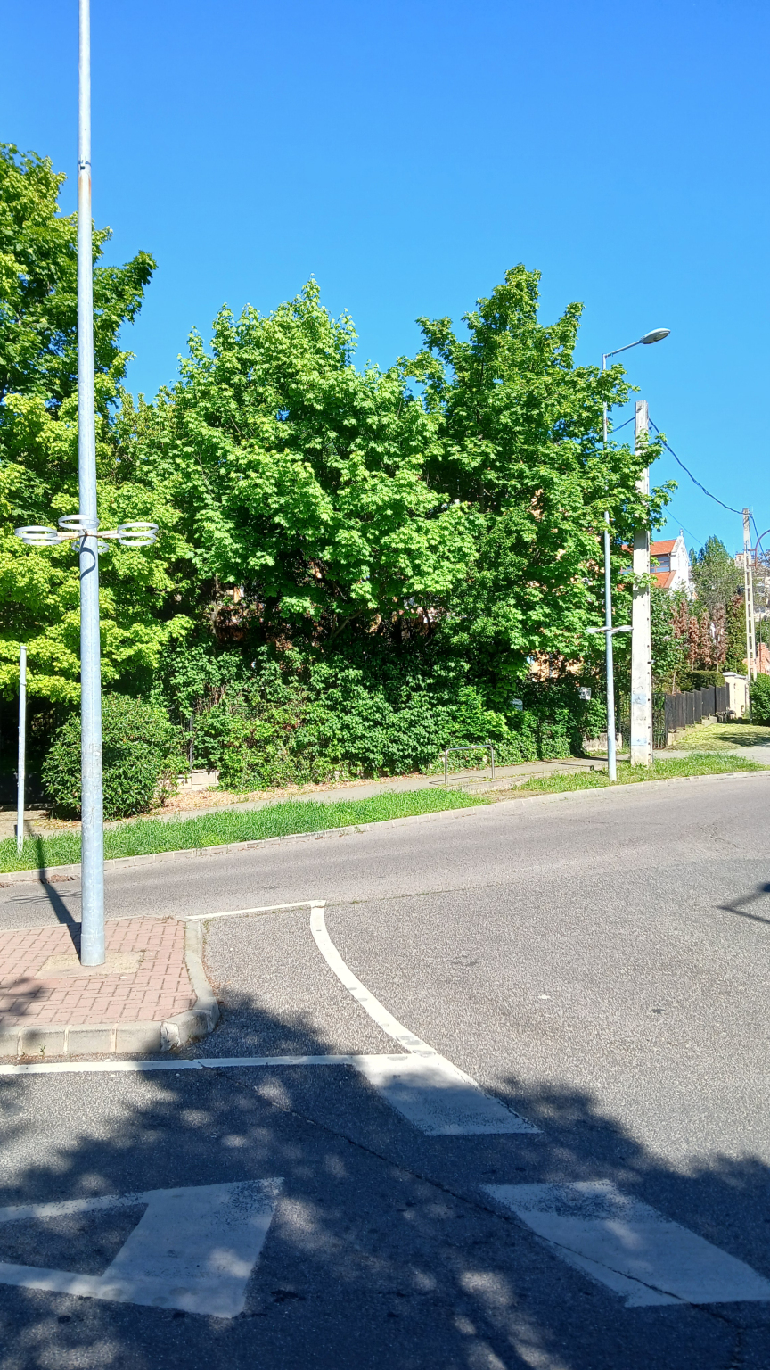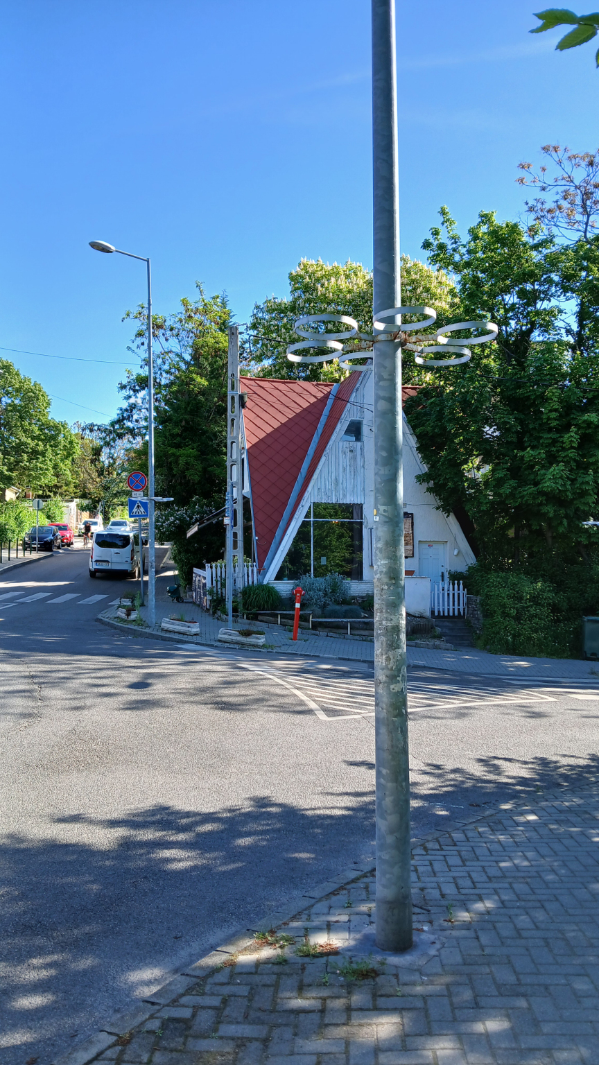 II kerület Eszter utca - Törökvész körforgalomnál idén nem kerültek fel virágok az oszlopokra.