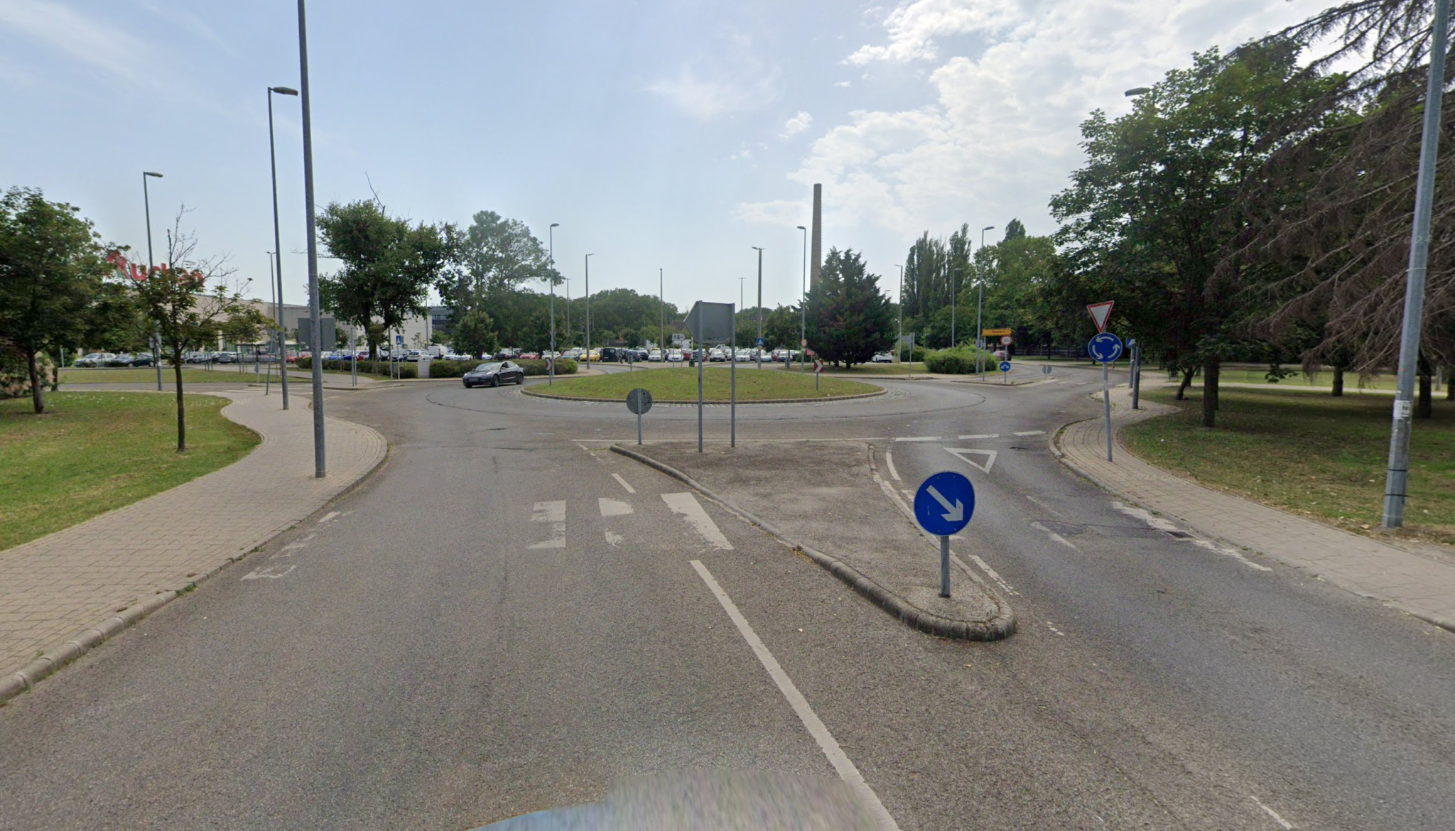Hosszabb ideje lekopott a gyalogátkelők felfestése az óbudai Auchan áruház déli körforgalmánál. A képen a tavaly júniusi állapotok látható, ami azóta csak romlott. Kérem, hogy mielőbb fessék újra őket. Köszönöm!