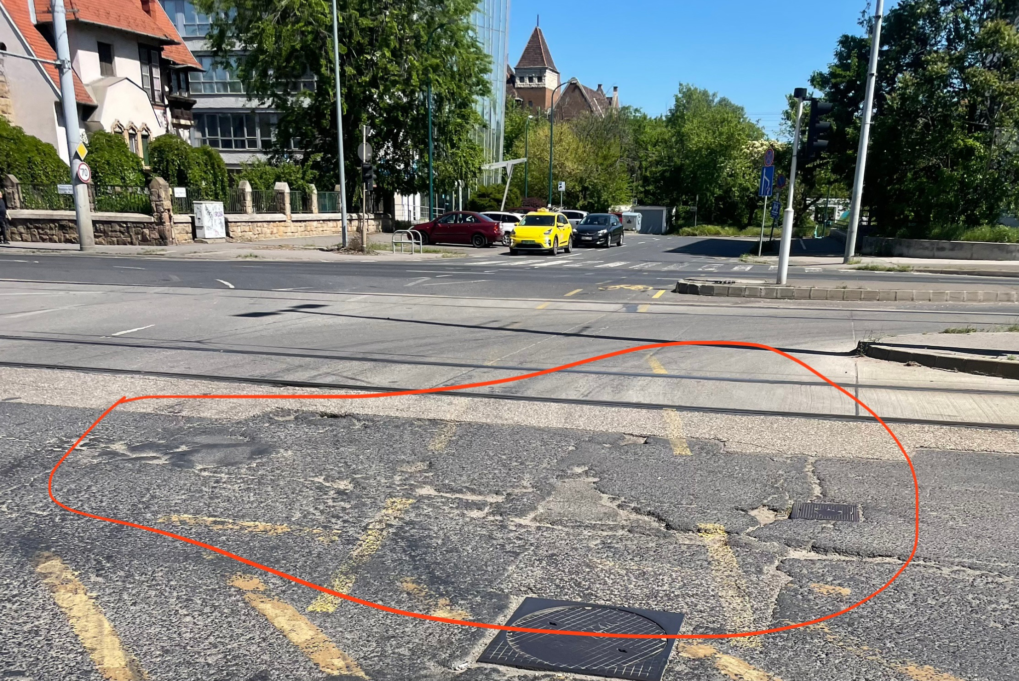 Az Ajtósi Dürer sortól a Hungária körúton keresztülvezető kerékpárúton hatalmas kátyúk vannak a sínek között, és balesetveszélyesek, a kerékpársáv is erősen kopott.